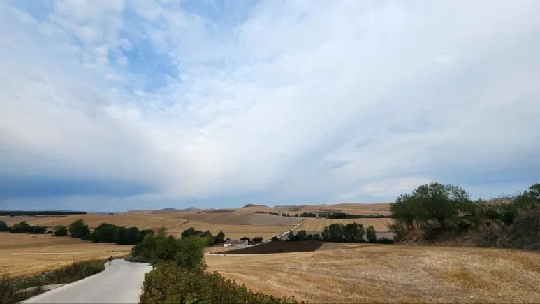 오늘은 산토 도밍고 델 라 칼사다(SANTO DOMINGO DE LA CALZADA)에서 벨로라도(BELORADO)까지 23.9KM라 거리도 괜찮았다. 가방을 다시 매기로 획을 그은 것처럼 벨로라도는 '리오하' 주와 '카스티야 이 레온 주'의 경계였다. 무거운 짐을 진 자는 내게로 오라, 는 벨로라도는 메세타 고원에서 가장 큰 주이기도 했다. 상체 근력이 좋고 하체가 문제인 몸이지만, 그래도 매뉴얼대로 배낭을 멨다. 부담을 어느 정도 안고 사는 것이 인생 습관이 된 건지 오히려 그게 편하다. 골반으로 무게를 떠받히도록 허리끈을 조이고, 어깨에 부담이 없도록 가슴 끈을 조였다. 가방은 뒤통수 바람막이마냥 위로 불쑥 올라왔다.