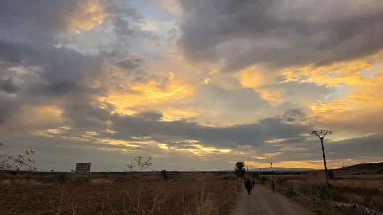 작년 이맘때 척추 협착이 심해지고 석회화에 디스크 탈출, 고관절증(연골이 닳아 뼈가 드러난 상태)까지 생겨 두 다리로 온전히 800km를 걷지 못할까봐 두려움이 있었다. 왼쪽 갈비뼈부터 꼬리뼈, 발바닥까지 몸 전체가 극심한 통증으로 괴로웠던 그때, 걸어도 누워도 해소되지 않아 다리를 자르고 싶던 10년 전 통증이 떠오르면서 분노와 우울이 찾아왔었다. 여기 오니 이제는 작년 통증을 불러와 ‘자라 보고 놀란 가슴’이 되어 가늘고 길게 가는 길을 택했다. 다리를 좀 편하게 해 주자는. 어둠이 걷히지 않은 시간에 출발해서 그런지 마음도 따라갔다. 위로의 벗, 태양이 나타났다.