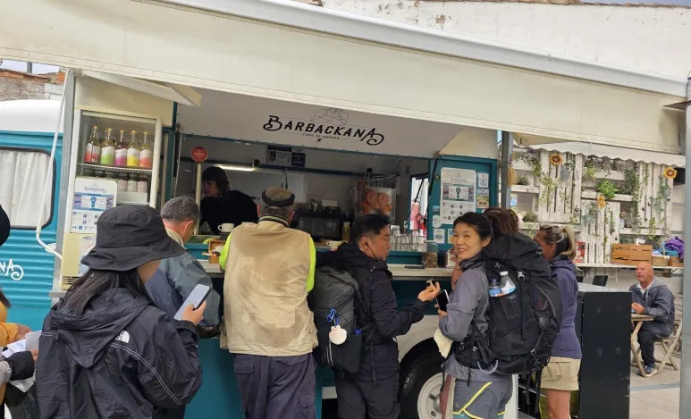 어제 같으면 '약간'의 경사로 느낄 법한 곳이 '급경사'로 느껴졌다. 가방이 뒷목 바람까지 철저히 막은 상황에서 푸드 트럭처럼 생긴 바가 나타났다(그라뇽). 바도, 사람도 반갑기 그지없었다. 줄이 길었고, 음식이 나오는 데도 오래 걸렸다. 배낭 무게보다 더 힘든 것은, 등에 다 큰 자식을 업은 것처럼 완전히 밀착해 목덜미부터 허리까지 땀에 흠뻑 젖은 거였다. 가방을 풀고 다시 매기도 귀찮았지만, 젖은 등에 가슴까지 타들어가 환기가 절실했다. 먹는 것을 그렇게나 좋아하는 사람이 가방 무거울까 봐 간식을 대폭 줄였다. 사과도 어제로 졸업했다. 비스킷만 있는데 몸의 열기구가 될까봐 이 역시 멀리했다.