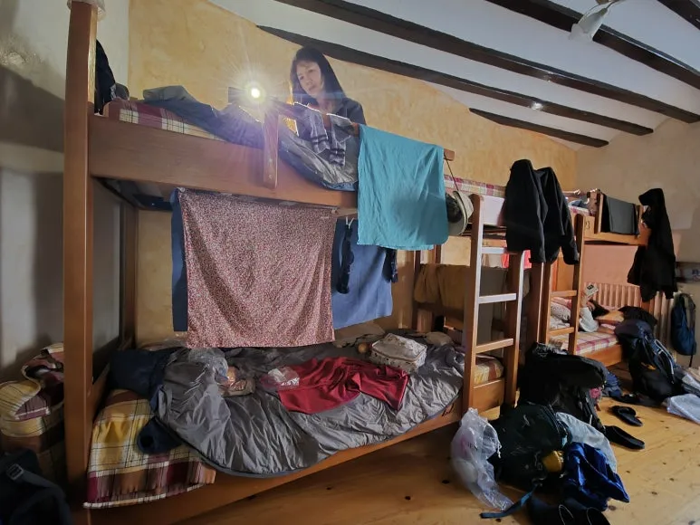 세상에는 보기엔 좋지만 내 것이기엔 부담스러운 것이 있다. 그중 하나가 알베르게 침대다. 어릴 적 로망이었던 이층 벙커 침대는 보기엔 예쁘지만 소유가 되는 순간 불편함이 따른다. 그런 의미에서 어제는 일층 침대에서 호사를 누렸다. 새벽에 뒤척이고 화장실 두세 번은 여전하지만 이층 계단을 양팔과 양 다리로 힘주어 오르내리느냐 마느냐는 다시 잠드는 데 큰 영향을 미쳤다. 잠들기 직전에 운동하면 교감신경계가 활발해 숙면을 방해하듯이 그 사실이 뇌에 박힌 이상, '그럴 것'이라는 신경증까지 보태 뜬눈의 시간은 길어졌다. 순례길 9일간의 빅데이터 분석 결과다.