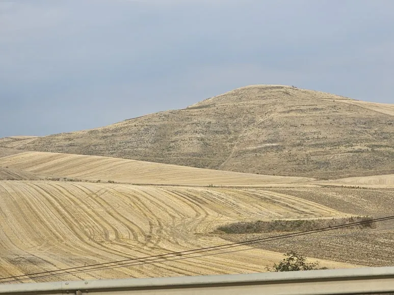 빵집을 기점으로 전망대처럼 들판이 한눈에 들여다보이는 곳에서 마을은 끝났다. 옆으로 빠진 계단을 내려오니 들판이 펼쳐졌다. 두 주의 경계인 레온 주를 알리는 큰 빨간 표지판도 보였다. 비닐장판을 타고 미끄러지고 싶은 능선을 볼 때마다 언젠가부터 마음을 졸이게 됐다. 어느 순간 이 풍경이 끊길까 봐, 순례길 잔고가 바닥날까봐, 아쉬운 두려움이 생겼다. 모래사장 같은 이 장면에 나는 기대고 있었다. 모래시계 속 모래가 매 순간 떨어지듯 했다. 모래시계 바늘 역시 집착이거늘. '까미노 천사'는 자연까지 아우르는 만물이었다.