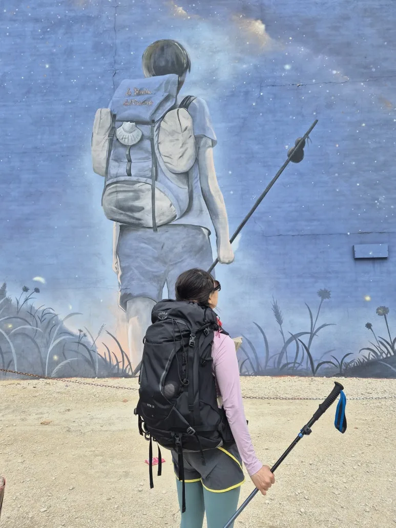 벨로라도 마을에 도착했다. 벨로라도는 절벽 밑에 만들어진 도시라고 한다. 그래 그런지 벽화가 예술이었다. 잘 도착한 기념, 한숨 돌리는 기념으로 벽면 앞에 섰다. 알베르게(CUATRO CANTONES ALBERGUE)도 물감으로 그려 넣은 듯했다. 내가 자는 방은 빼고. 내 침대는 난민촌이 따로 없었다. 분당 집도 내가 자는 곳은 코딱지만 해도 탄천 풍경 맛에 산다. 0층(스페인은 1층이 0층)은 가슴 저미는 편지들로 따뜻했다. 심지어 수영장까지. 운동 욕구를 불러일으켜 비가 내리기 전까지 수영복 아닌 후줄근한 옷으로 근력 운동을 했다. 2층에 묵었는데 바로 앞은 식당이었다. 멀리 갈 것 없이 순례자 메뉴를 시키면 되었다. 순례자 메뉴 시간(7:30 PM)을 못 참고 그새 동네 바에 가서 또르띠야를 먹고 왔지만.