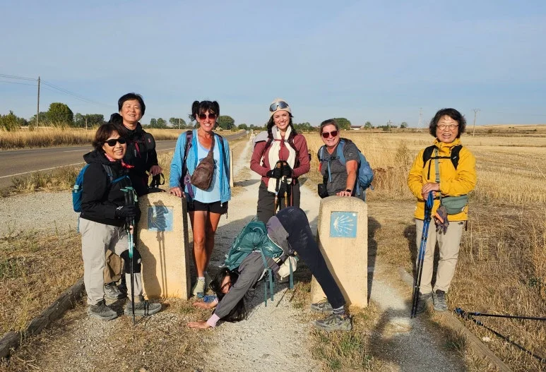 끝없는 들판인 '메세타 고원'은 부르고스부터 레온까지 이어지는데, 강물에 취한 나머지 현 위치를 놓칠 뻔했다. 현 위치를 제대로 알아야 미래가 보이는 법. 어제의 고원과 다른 점은 'S'자 곡선이 아닌 앞만 보고 가는 일직선이라는 점이었다. 길 위에서 외국인 순례자들과 좋은 기분을 공유하며, 요가 동작을 펼쳐 보이기도 했다.