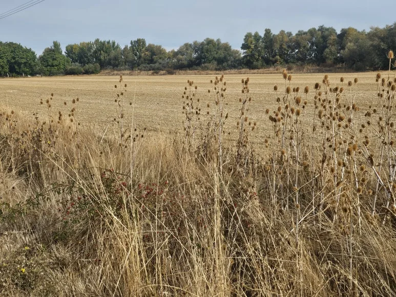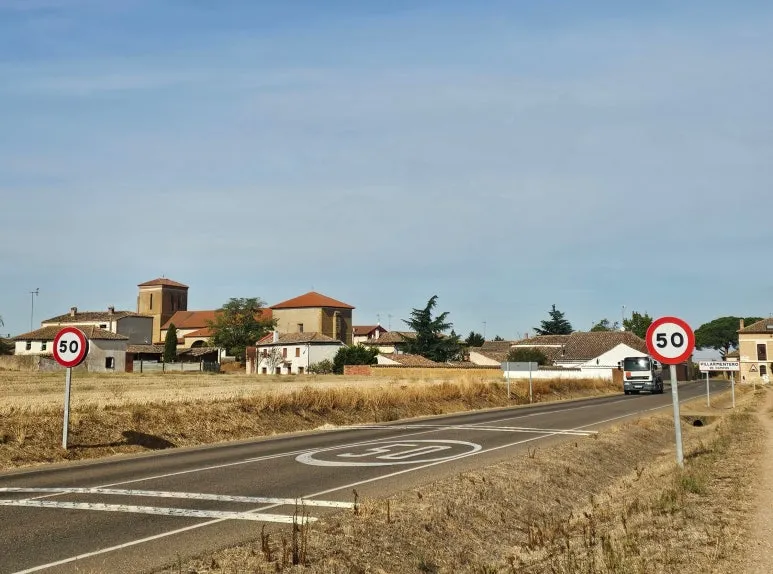 갈림길이 나왔다(포블라시온 데 캄포스). 왼쪽은 돌다리 건너 도로 따라 빨리 가는 길, 오른쪽은 다리 없이 길게 돌아가는 시골길이었다. 내 다리는 돌다리를 원했다. 인천공항에 마중 나온 응원부대처럼 '부엔 까미노' 표지석들이 늘어선 길이었다. 시골길이 아니어도 다채로운 풀들이 길 위에 양념을 치고 있었다. 있는 듯 없는 듯 피어난 들꽃에도 눈길이 갔다. 인간이 바라는 것, 아니 세상이 바라는 것은 그저 이런 따뜻한 '눈길'이 아닐까. 관계의 핵심은 관심일 테니 말이다. 끝없는 차도 옆을 걷다 '50'이라는 표지판이 눈에 확 들어왔다. 자동차를 위한 표지판인데 내 가슴팍에 꽂힌 이유는 무엇일까. 속도 50, 내 나이 오십. 이제는 인생의 속도를 절반으로 늦춰야겠다는 생각이 들었다. 땅의 색이 변하듯, 걷다 보면 변화는 찾아오게 마련이라고 길은 말하고 있었다.