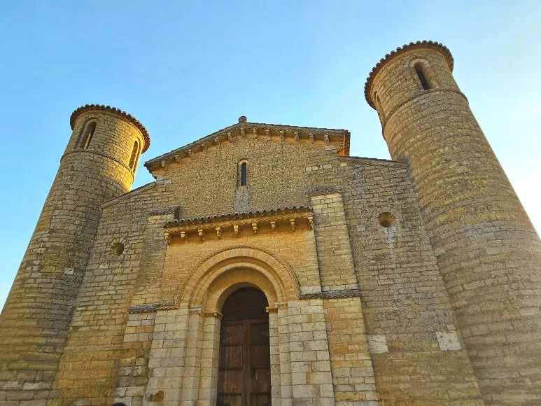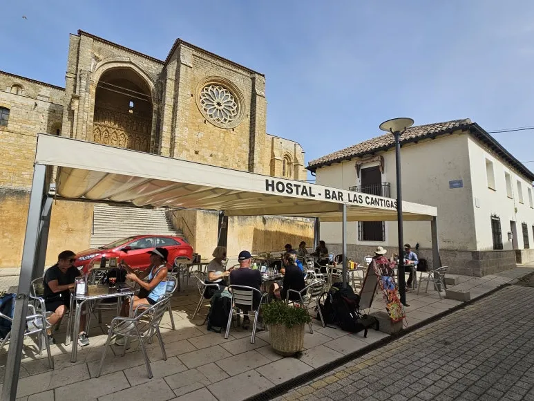 곧 첫 번째 바가 나왔다. 카페거리처럼 바가 줄지어 있어 순간 선택장애가 튀어나올 뻔했다. 오다가 길에서 주운 여성 등산 모자의 주인을 찾아주거나 누군가에게 선물할 수 있을 만큼 인상이 좋아 보이는 바에 들어갔다. 그 근처에는 프로미스타의 산 마르틴 성당(Iglesia de San Martín)이 위엄있게 서 있었다. 성당이라고 누가 알려주지 않으면 요새로 착각할 법한 웅장한 외모였다. 이른 시간이라 문은 굳게 닫혀 있었지만, 겹겹이 쌓인 아치형 문과 층층이 쌓은 원통형 기둥은 바라보는 것만으로도 충분히 마음을 어루만져 주었다. 빛 없이도 스스로 빛나는 곡선에 로마네스크 양식의 정곡을 찌른 듯했고 자체 발광에 샘도 났다. 이제 고작 6.5km를 걸었으니 성당 속을 보여주지 않아도 이미 마음은 충만했다.