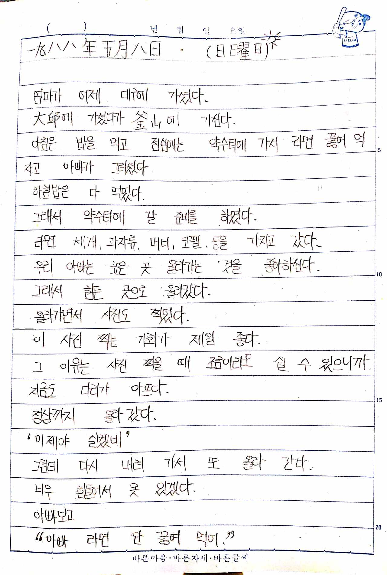 현복이의 일기가 유독 생각난다. 나의 초등 일기에 등장한 아버지도 불러 본다. 두 일기의 질적 차이는 확연하지만 이 땅의 아버지를 위한다는 한 마음 한 뜻으로 결의를 다져본다. 이제 우리 살만하니 건강 꽉 붙들어 매소!