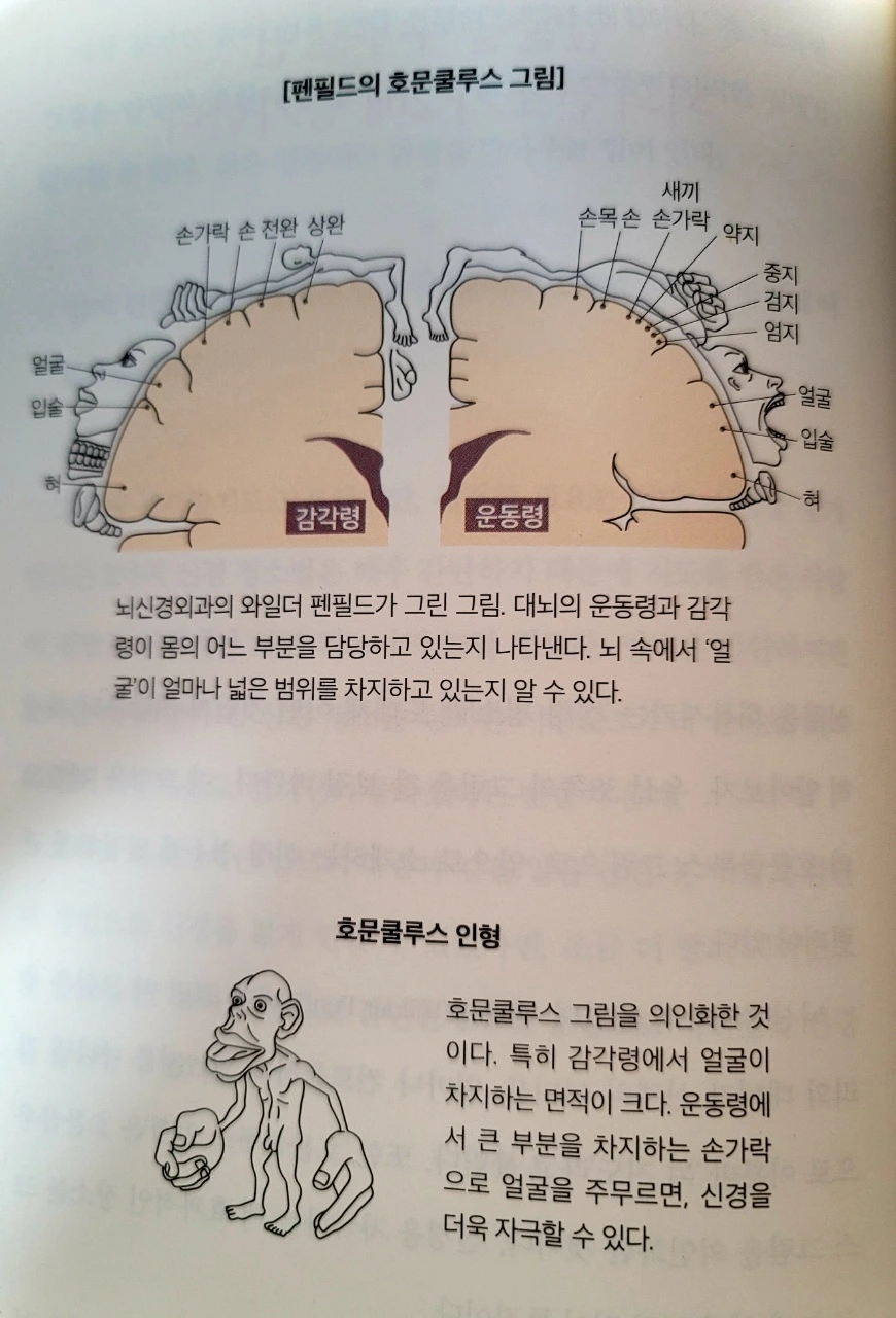 세수할 땐 웃는 얼굴로 아래 그림과 같이 얼굴 꼬집기 운동을 하고 있다. 뇌 속에 얼굴(손)이 차지하는 신경이 이렇게나 많은데 안 할 이유가 당췌 없다.