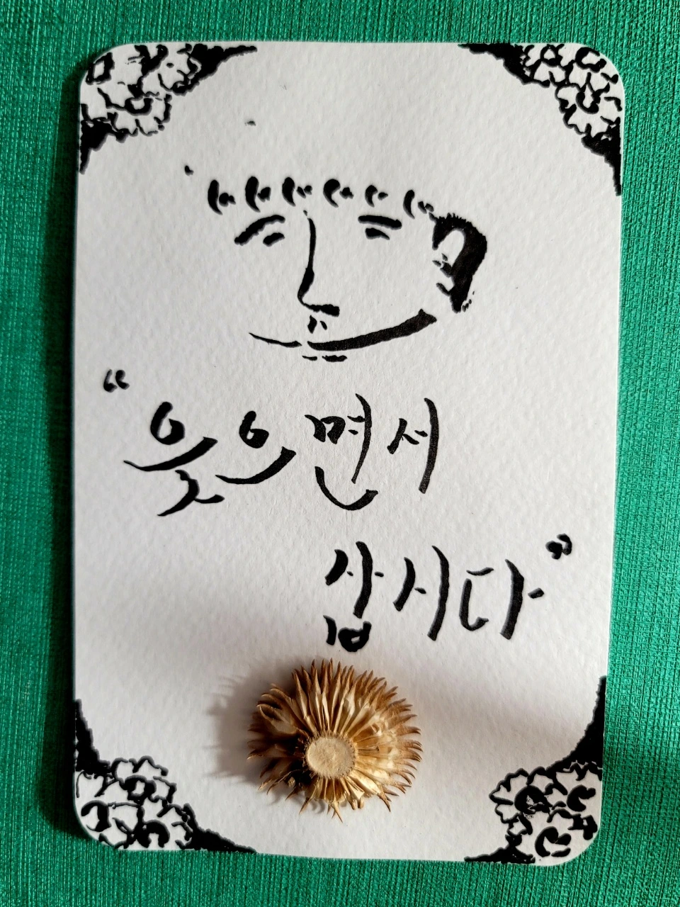 신발이 필요하면 길 가다 남의 발만 보이고, 가방이 필요하면 남의 등만 보인다. 웃음이 필요하니 2년 전 아들이 새해소망으로 쓴 꽃 메모가 눈에 띠었다. '지못미'는 이럴 때 쓰는 멘트인가. 눈물 쏙 빠지도록 웃기고 또 웃는, 그런 웃음 해픈 엄마가 되리라.