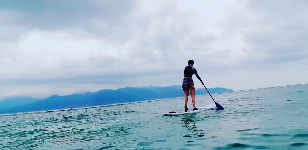 현지인들이 내가 참 안쓰러웠나 보다. 한참을 노 젓는 내 근처로 패들보드를 빌려줬던 직원이 오더니 내가 일어설 수 있게 설명도하고 보여주기까지 한다. 나는 과연 몇 번을 빠졌을까! 생각도 안 난다. 다행히 얕고 잔잔한 물이기에 덜 겁먹고 그 시간을 버틸 수 있었던 것 같다. 이제 체력도 바닥나고 더 이상 안될 것 같다고 느껴지는 순간이 오고 성격 좋아 보이는 현지인도 웃음을 잃어가려는 찰나다.