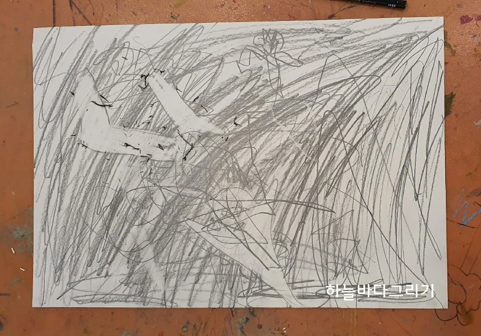 오늘도 한 아이가 짜증을 내며 4B연필로 신경질적인 선을 마구 그린다.