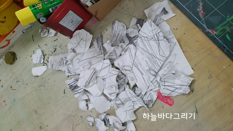 선을 마구 휘갈기기도 하고 종이를 찢어도 좋다.