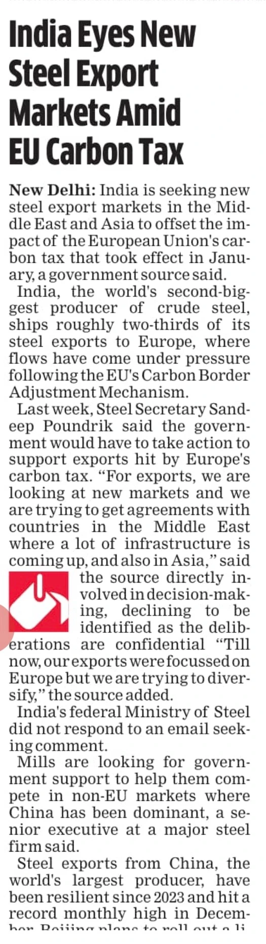EU의 탄소국경조정제도(CBAM)가 본격화되면서, 인도 철강업계가 새로운 수출 시장 개척에 나섰습니다. 인도는 전 세계 조강 생산 2위 국가로, 철강 수출의 약 2/3를 유럽에 의존해왔습니다. 하지만 EU의 탄소세 도입으로 유럽 시장에서 큰 압박을 받게 되면서, 전략적 전환이 불가피해졌습니다.