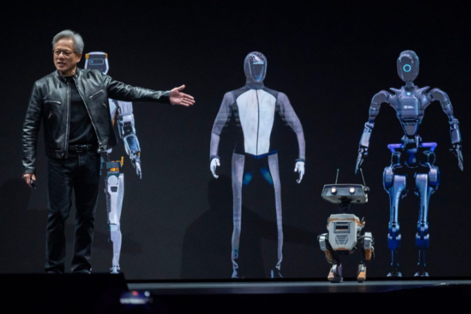 NVIDIA의 젠슨 황은 연단에 로봇을 세우며 말했다.