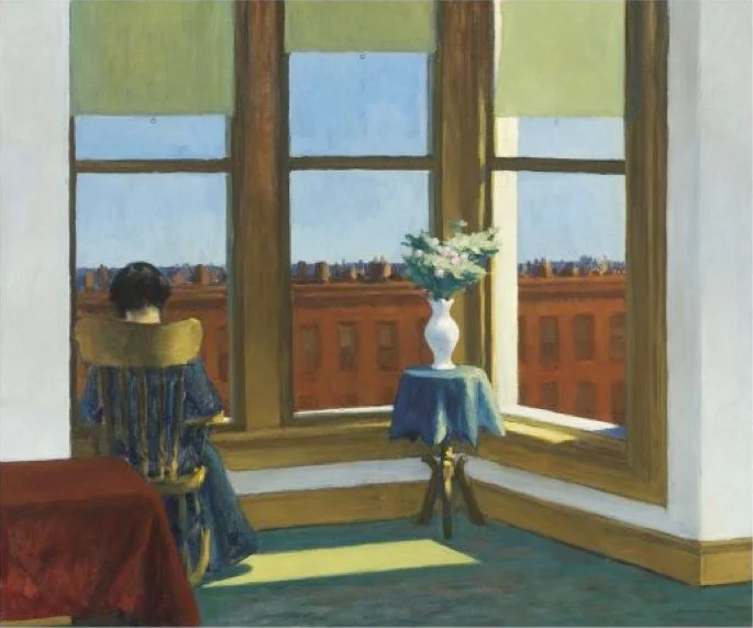 현대인들의 고독에 대해서 가장 잘 표현한 사람이 미국의 사실주의 화가 에드워드 호퍼(Edward hopper, 1882-1967)이다. 미국인들이 사랑하는 화가인 그는 일생 뉴욕에서 살면서 도시의 쓸쓸한 풍경과 도시인들의 고독한 모습을 그렸다. 그가 1932년에 그린 ‘브루클린의 방’(Room in Brooklyn)을 보면, 한 여인이 집 안 의자에 앉아 있다. 책을 보는지, 신문을 보는지 모르지만 고개를 약간 숙이고 있다. 큰 창문 너머로 도시의 빌딩 숲들이 아련하게 보인다. 그림에 주로 쓰여진 푸른색과 황토색, 연한 하늘색 물감의 톤이 관람자의 마음을 스산하게 만든다. 이 황량한 빌딩 숲의 한 가운데 저 큰 집에서 저 여인은 혼자서 무슨 생각을 하고 있을까? 하는 상상의 나래를 펼치게 된다. 이 그림은 누구나의 평범한 일상을 묘사한 것 같지만, 방 크기가 워낙 크게 그려진데다 큰 창으로 보이는 풍경에 비해 한쪽 편에 덩그러니 앉은 여인은 유독 쓸쓸해 보인다. 창문으로 스며드는 은은한 빛과 그림자는 분위기를 따스하게 만들기보다는 이 여인의 고적함을 더 부각시키는 것 같다. 황량한 빌딩 숲 한 가운데서 우리가 얼마나 고독한 존재인지를 새삼 느낀다.