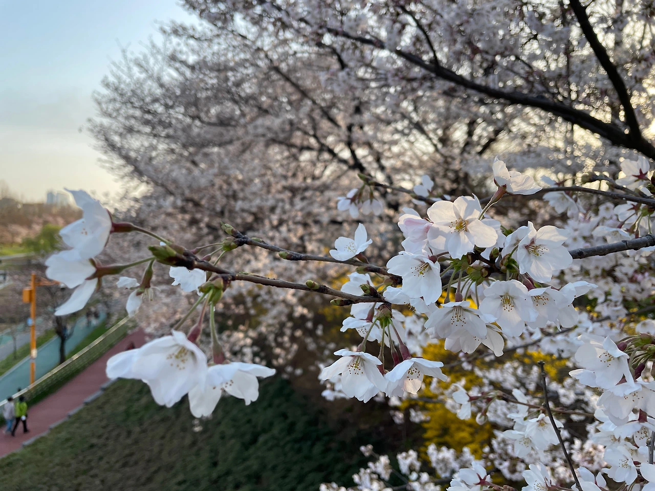 덕분에 퇴근길의 걷는 속도는 느려질 수밖에 없었다. 꽃이 더 많이 핀 나무들이 있는 쪽으로 발걸음을 맘대로 옮기다 보니, 직선상 빠르게 가는 건 포기할 수밖에 없었다. 대신 느긋하게 예쁜 풍경들을 눈에 담았다. 핸드폰으로 사진도 찍어야지 생각했지만. 너무 예쁘게 찍으려고 애쓰지는 않기로 했다. 그냥. 예쁘다 하며 즐길 수 있을 정도로만 시도해 보기로.