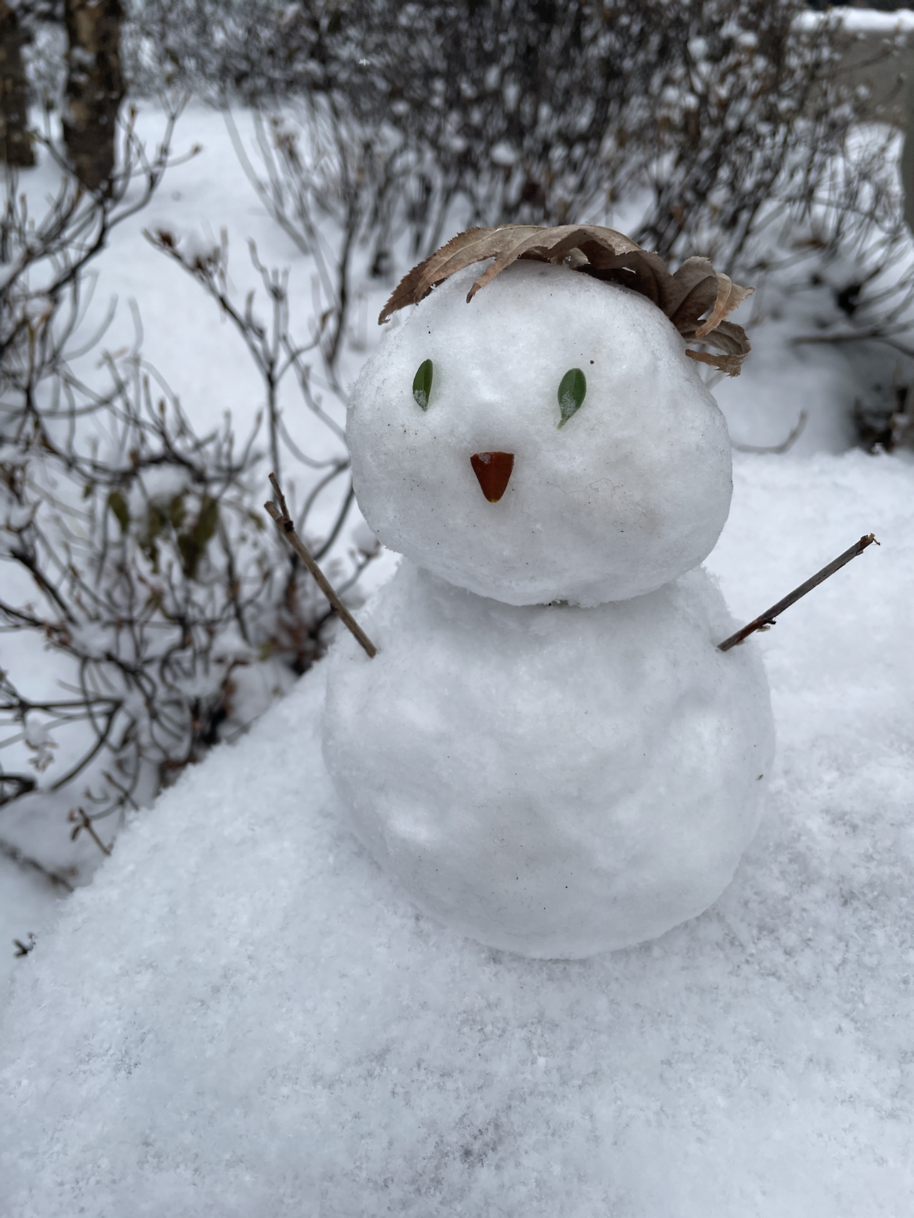 겨울에 눈이 내리면 나는 '환자'답게 또 바깥으로 나선다. 그리고 그 눈이 쌓일 정도가 되면 꼭 눈사람을 만든다. 손바닥만 한 작은 눈사람이다. 두 덩이의 눈뭉치로 기본 형태를 만든 다음, 그다음 작업을 위해 아파트 화단을 두리번거리곤 했다. 눈사람의 눈과 입, 그리고 팔을 만들기 위해서다. 색이 바랜 이파리와 가지들을 떼어다가 눈사람을 꾸며주곤 했다.