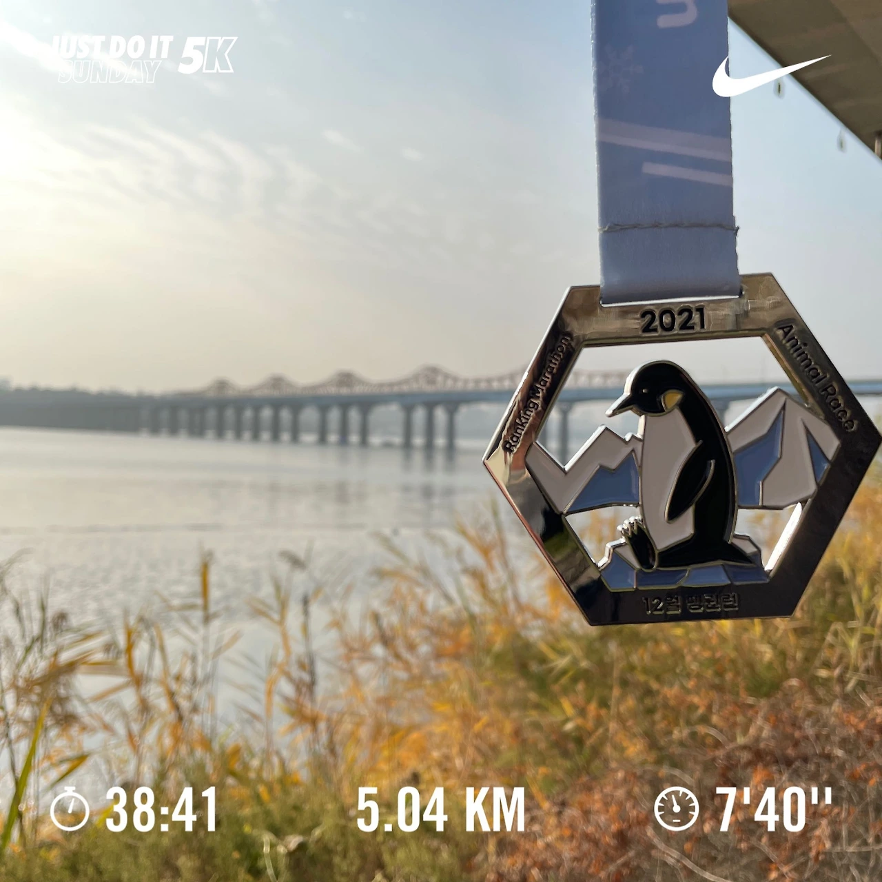 아파트 단지에서만 뛰다 보니 어느 정도 되면 몇 분이 지났겠다며 시간이 짐작되는 바람에, 재미는 물론 집중도도 떨어졌다. 그래서 어느 날은 큰맘 먹고 약 20분을 걸어 한강 둔치를 달리기도 했다. 그렇게 인터벌 훈련이 어느새 몸에 익었던 걸까. 코로나 팬데믹이 한창이었을 때라, 기록을 증명하면 메달 등의 상품을 보내주며 원격으로(?) 인정해 주는 버츄얼 마라톤까지 신청했다. 나름 귀여운 메달을 갖고 싶은 욕심도 한몫했다. 그렇게 5km 달리기까지 해냈다.