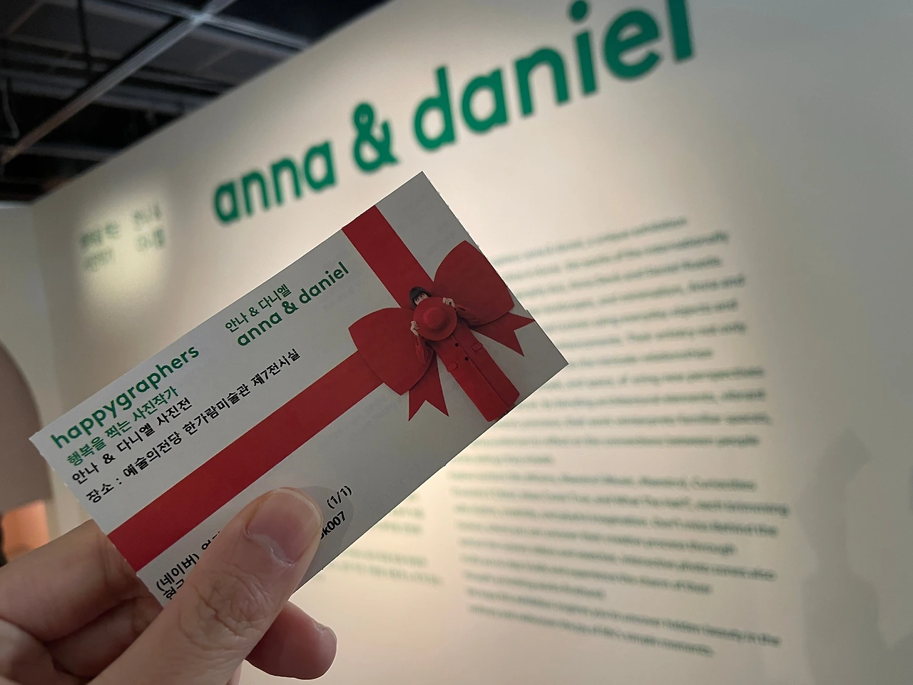 '안나&다니엘 사진전' 또한 인스타그램을 통해 알게 됐다. 원래 팔로우하던 작가도 아니었는데, 전시 소식을 접하곤 '이 사진들 재미있게 봤었는데!' 하고 있었다. 어느새 내 눈에 들어와 인상적으로 남았었나 보다. 정작 얼리버드 티켓 오픈 광고를 보면서는 선뜻 결정하지 못했는데, 곧 판매기간이 종료된다는 문구에 마음이 급해졌다. 작년 연말, 새해를 앞두고 나 스스로에게 선물을 주자는 마음으로 질러버렸다.