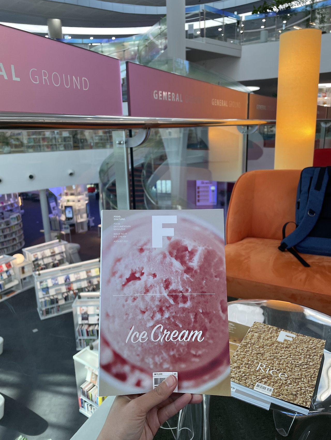 어떤 책을 읽어볼까 한 바퀴 빙 둘러보았다. 우선 문학 서가에 놓인, 예전부터 궁금했던 일본 소설을 집어 들었다. 하지만 '왠지 이곳에서만 볼 수 있는 책을 봐야겠다'라는 마음이 들었다. 중간에는 김영하 작가의 신작 <작별인사>도 찾았으나, 역시나 인기도서인지 대출 중이었다. 그래서 2층에 처음 올라왔을 때 궁금했던 'F' 시리즈 매거진 코너로 향했다. 다이닝 분야, 매거진의 글, 아티클에 괜한 관심이 생기고 있어 더욱 궁금했다.