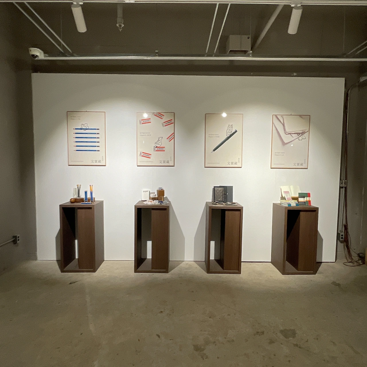 종이, 붓, 먹, 벼루. 늘 곁에 두게 되는 문구를 말하는 문방사우. 그 문방사우의 현대판으로 연필, 지우개, 펜, 종이를 내세운 가운데, 유명 작가들의 에세이나 소설에 등장하는 문구류의 이야기를 소개하는 공간으로 전시는 시작되었다. 이러한 기획 자체가 너무나 마음에 들었다.