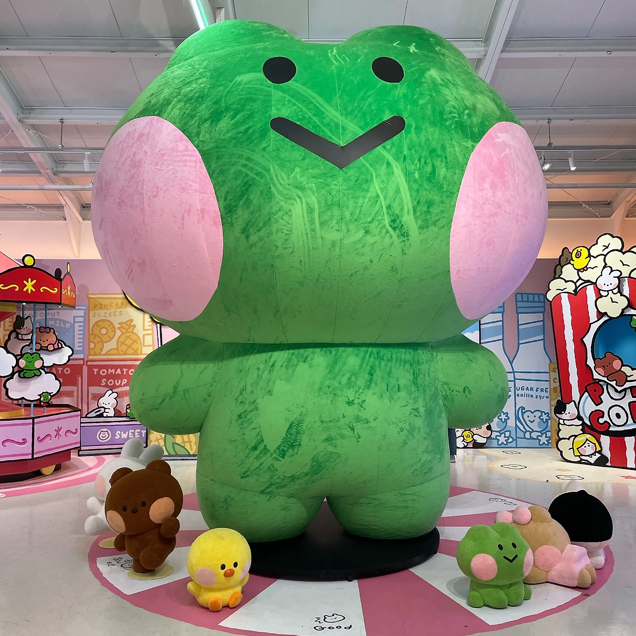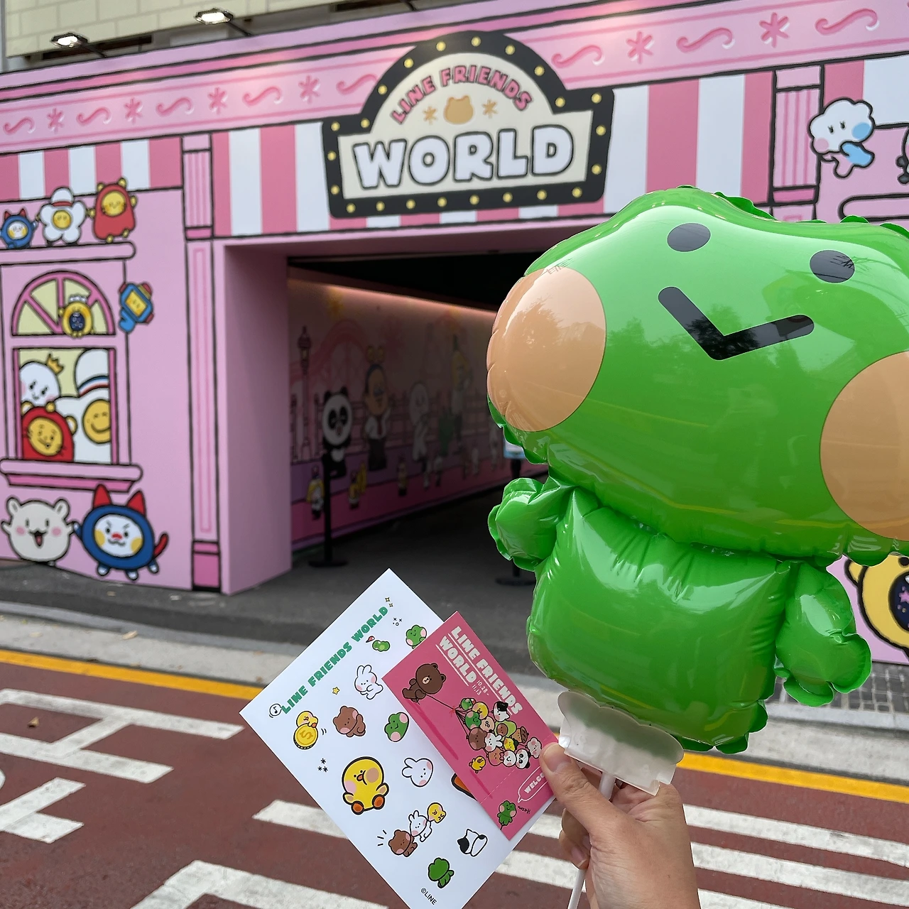 기존 라인 프렌즈 캐릭터들의 베이비 버전 캐릭터들로 꾸며놓은 공간이었다. 둥글고 귀여운 건 못 참지. 굿즈들을 살 만한 관심은 없었지만, 여기저기 구경하며 포토존에서 사진도 찍어보았다. 이미 나는 개구리 풍선으로도 충분히 만족한 상태였다.