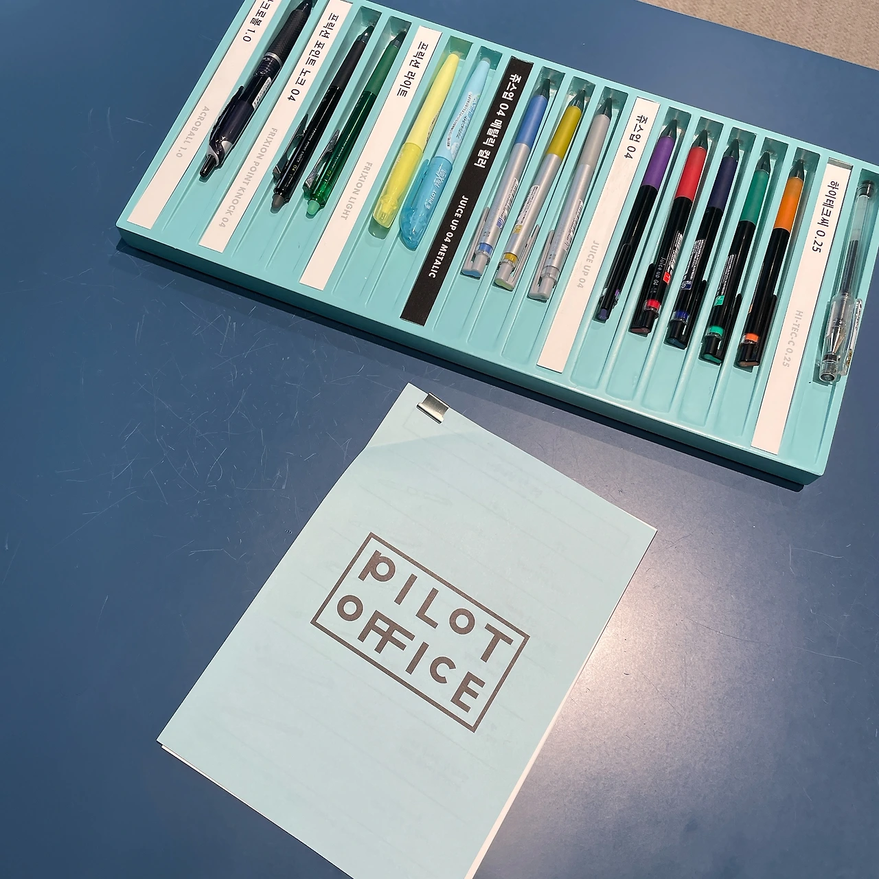 전체적인 콘셉트는 오피스, 사무실이었다. 안으로 들어서니 오른편에는 노트, 편지지, 봉투, 메모 패드 등의 지류들이 있었고 왼편에는 이번에 홍보하는 파이롯트 필기구 제품들이 진열되어 있었다. 흰색, 검은색 메모지에 직접 써볼 수 있었다. 제일 안쪽에는 필기구 제품들을 직접 써볼 수 있는 체험 공간이 마련되어 있었다.