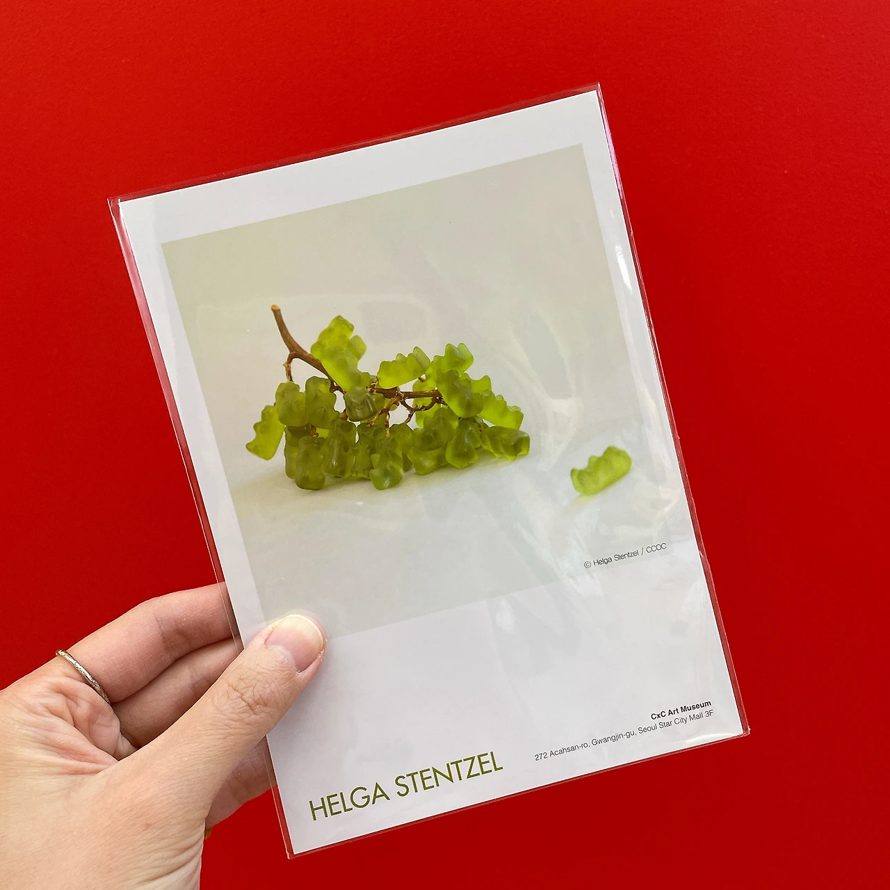 전시를 보고 나올 때면 엽서 굿즈를 사는 편이다. 이번에는 꼭 사고 싶은 엽서가 있었다. '이 작품을 담은 엽서 굿즈가 있다면 꼭 사야지.' 하면서. 바로 52개의 젤리곰을 직접 붙여 만든 포도송이였다.