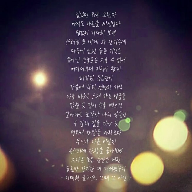 아담한 곡의 정서가 애달프다. 서로 엇갈린 삶의 굴곡이 아련하다. 누군가의 품에 안겼을 때의 느낌 그대로다. 어쩌면 태아의 기억일지도 모른다. 처음부터 끝까지 두드리는 건반의 리듬은 심장 벽만큼 세심하다. 아이가 성장하는 파노라마의 배경이다. 그때 그 아인 훌쩍 커버린 존재의 벽이다.