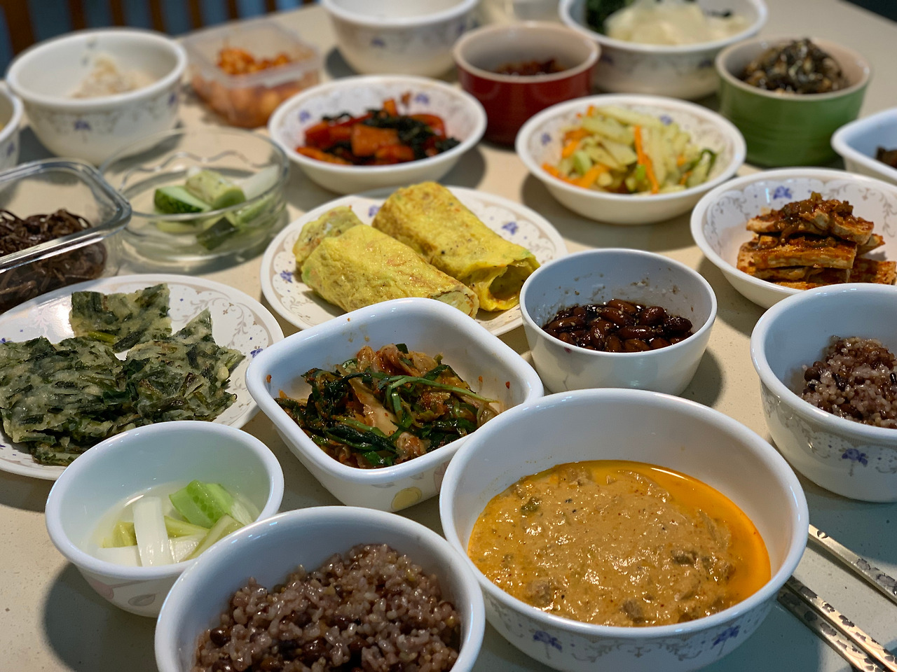 한국 밥상에 김치는 빼놓을 수 없다. 작년 김장 김치가 꽤 먹을 만하게 익었다. 청각과 연근가루를 넣은 덕분에 김치 숙성이 늘 아삭함을 유지하는 이유다. 최근에 배추 3통을 절여 무친 겉절이나 때로는 나박김치를 준비하는 경우도 생긴다. 그냥 풋풋함을 즐길 수 있는 것만으로도 모임 가족들은 웃음꽃을 피운다.