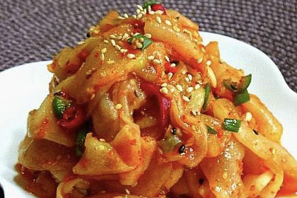 우선 필러로 노각 껍질을 벗긴다. 길이로 절단해 씨를 제거하고 반달로 채 썬다. 소금으로 20여분 절여둔다. 소스도 준비한다. 다진마늘, 고춧가루, 고추장, 식초, 설탕, 들기름, 통깨 가루가 기본이다. 참치액, 맛술도 조금 넣어주면 좋다. 소스를 찍어 먹어보고 취향대로 양념을 추가하면 된다. 절여둔 노각을 면 보자기로 꽉짜내 소스와 무치면 완성.