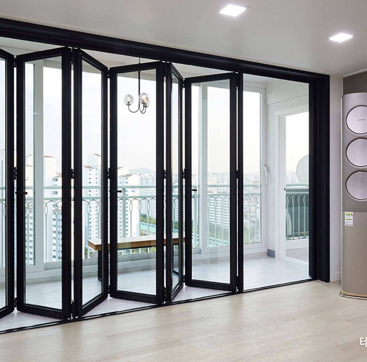 현관 중문을 설치해서 신발장을 격리한 것이 좋은 선택이었다. 특히 거실 폴딩도어 설치는 가장 만족하는 부분이 됐다. 2년이 돼 가는 지금도 거실 폴딩도어는 멋진 모습을 연출하고 있어 만족도가 크다. 거실 개방감과 함께 실용성에서도 모자랄 게 없다. 폴딩도어는 내가 처음으로 제안했다. 아내는 공사가 끝난 뒤 후한 평가를 내렸다.