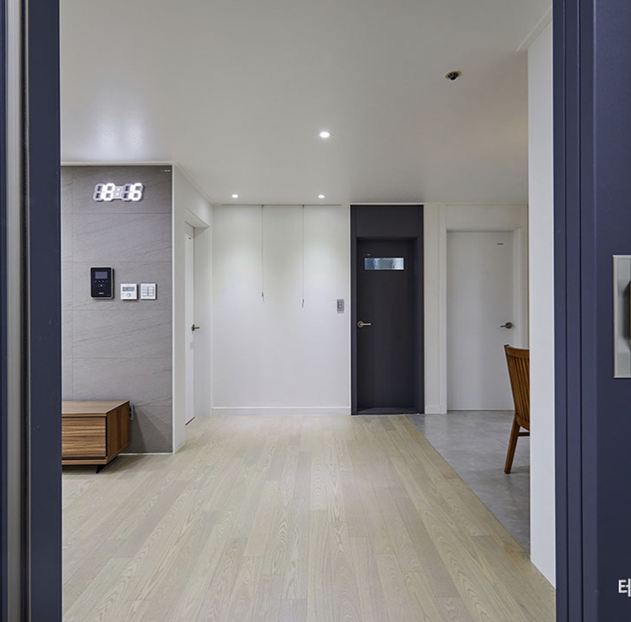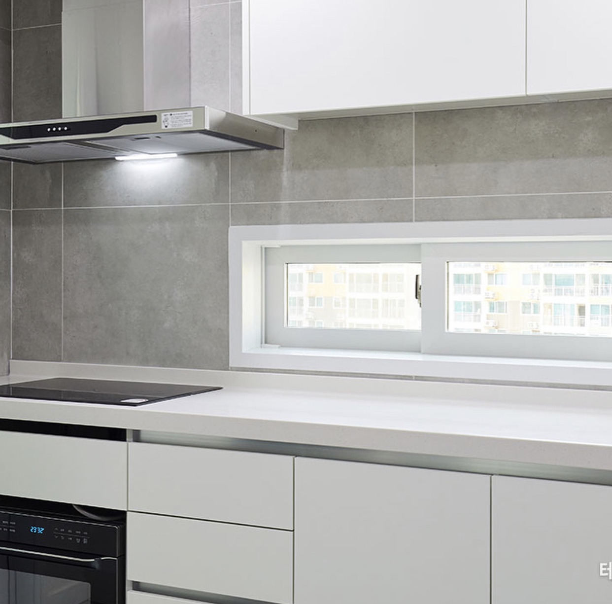 거실과 주방 바닥을 마루로 할지 타일로 할지도 고민이 됐다. 비용과 장단점이 다 달랐기 때문이다. 결국 주방은 타일로, 거실은 마루로 해 분리했다. 마루도 강마루와 온돌마루가 있었다. 비용이 들더라도 부드러운 온돌마루로 결정했다. 주방 벽타일도 고민이었다. 회색 톤의 포세린 타일로 결정했다.