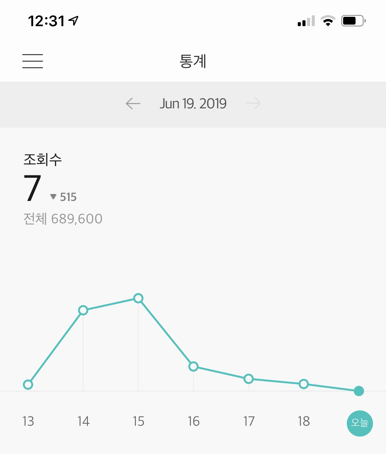 브런치 주요 게시글 조회수 (6/19 00:31 현재)