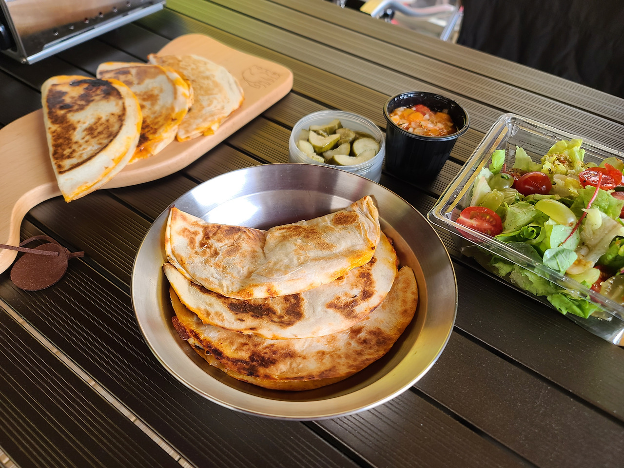 <김치로 된 소를 넣은 김치 퀘사디아와 샐러드>