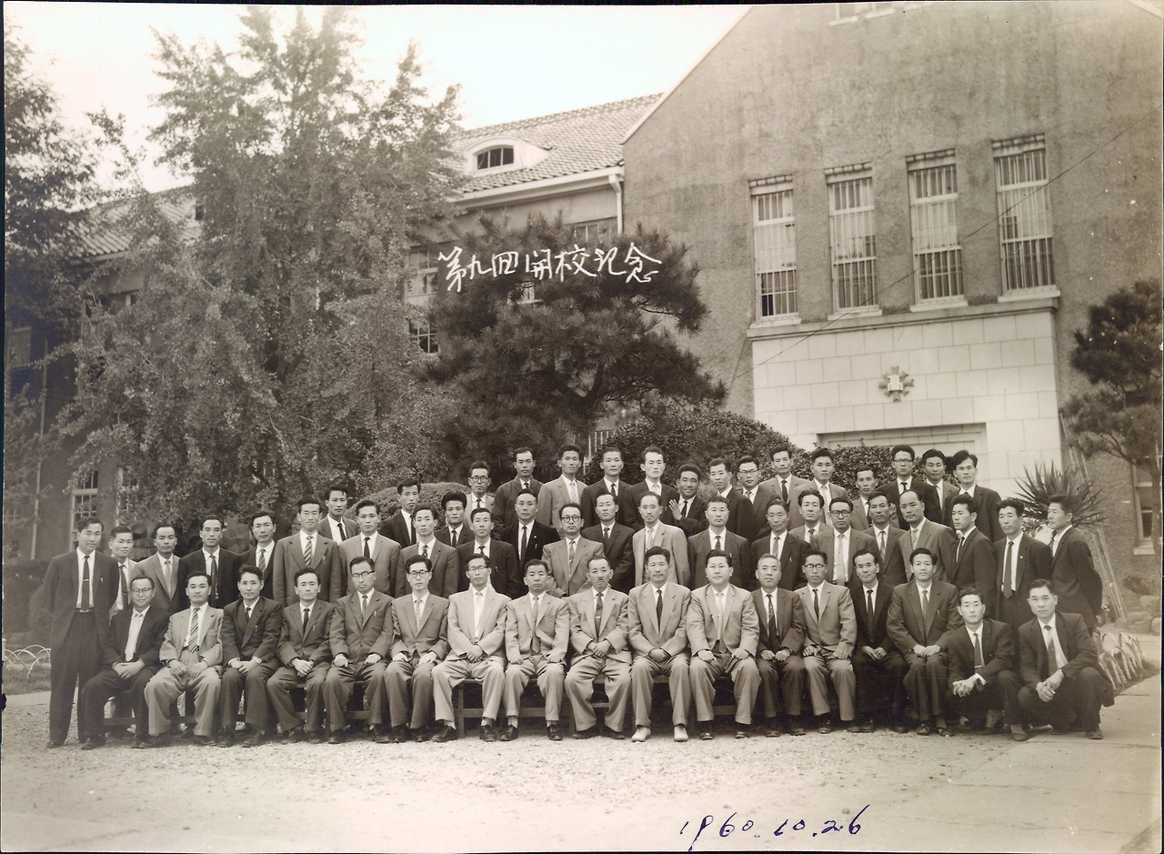 광주동중 제9회 개교기념, 교직원, 이원정교감은 두 번째 줄 가운데.
