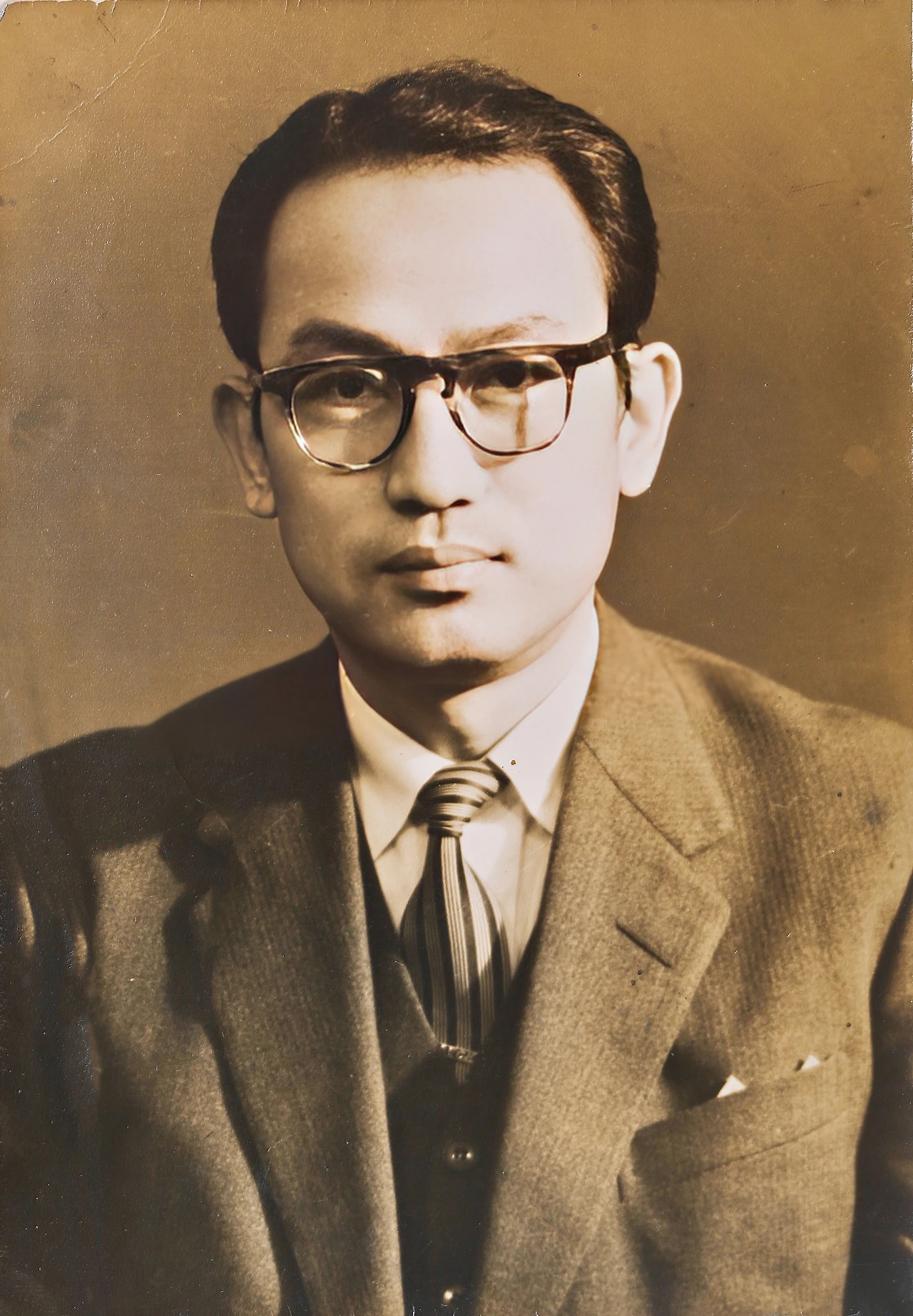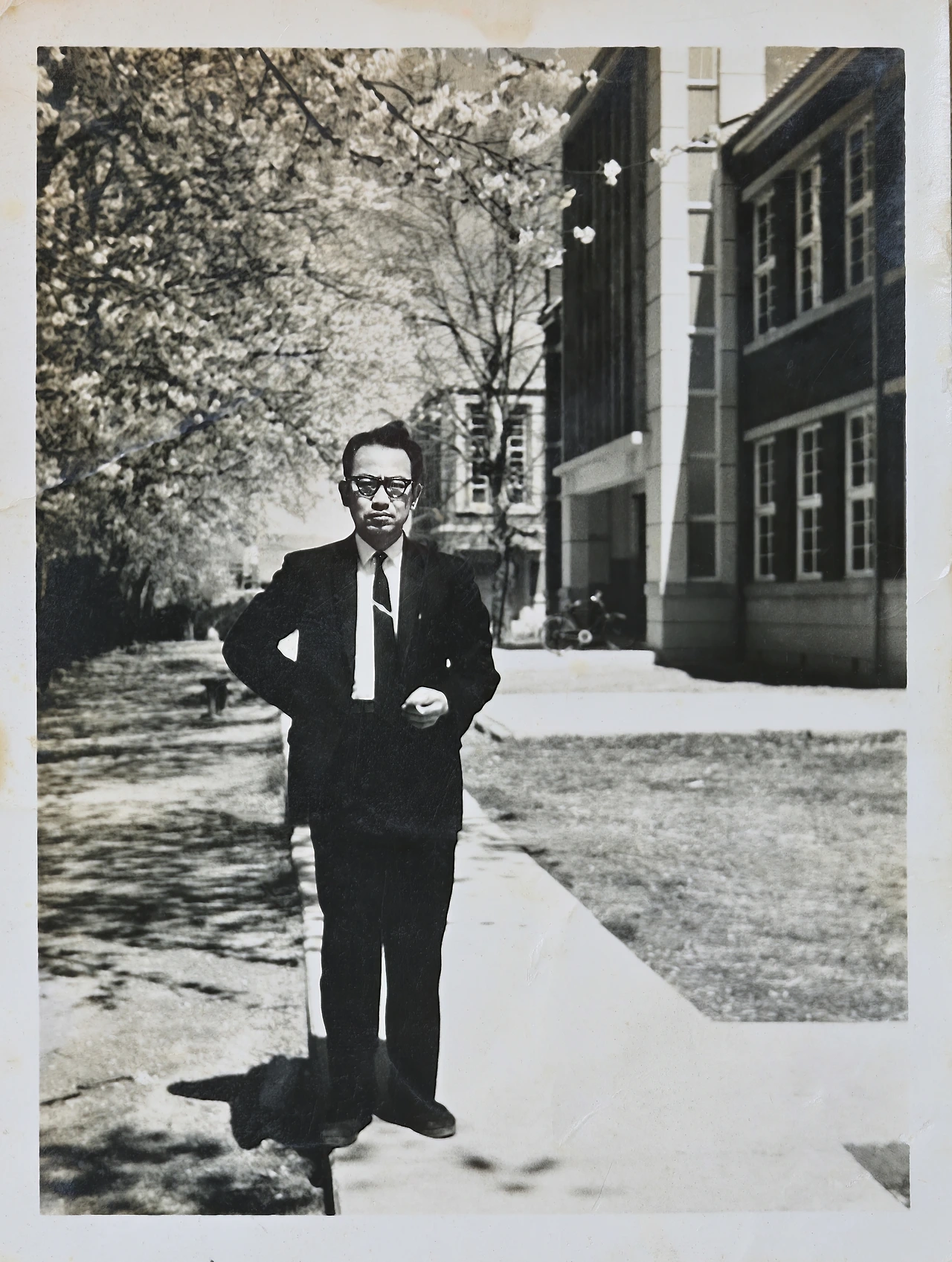 광주동중학교 교정 목련꽃 아래, 이원정 교감, 1961.