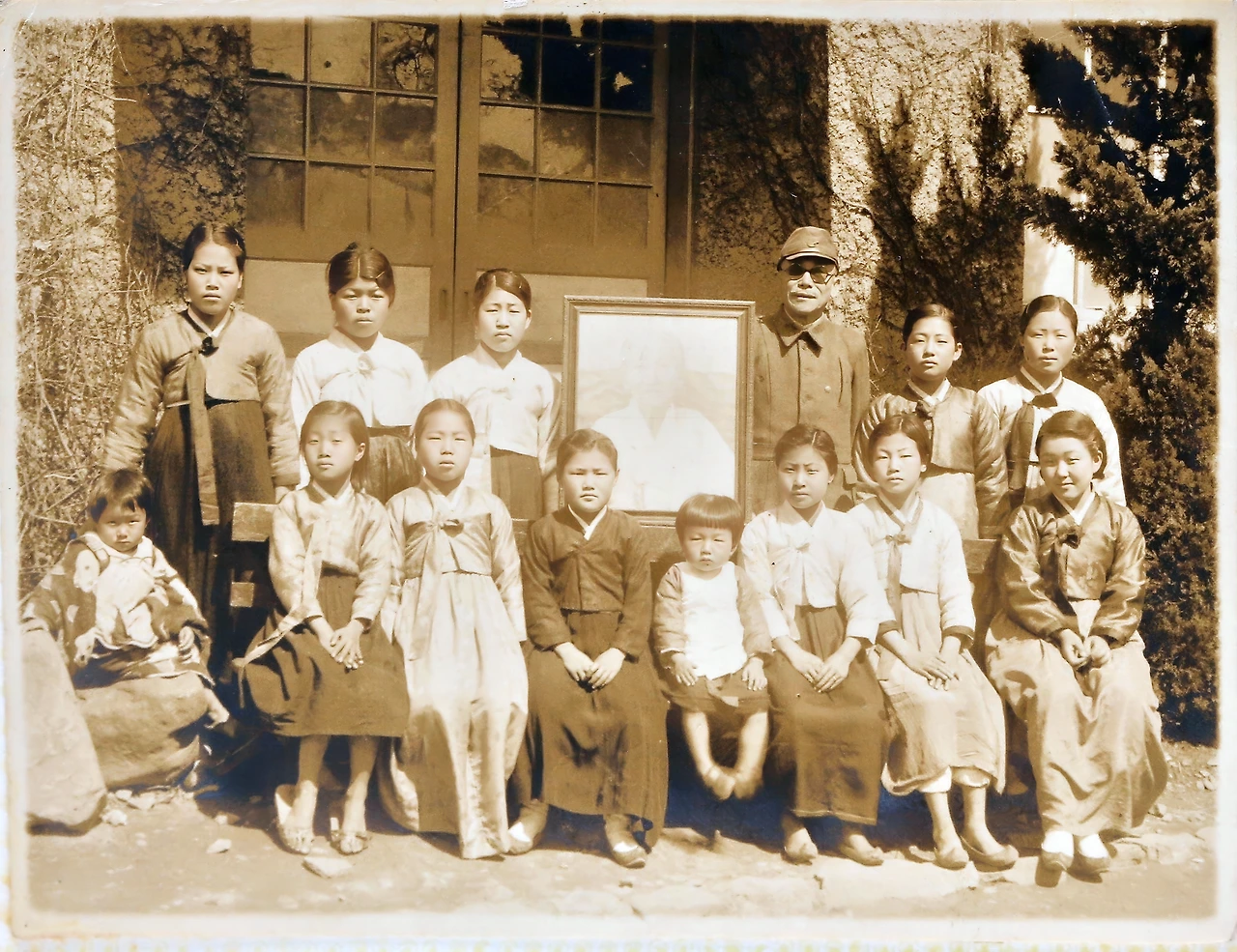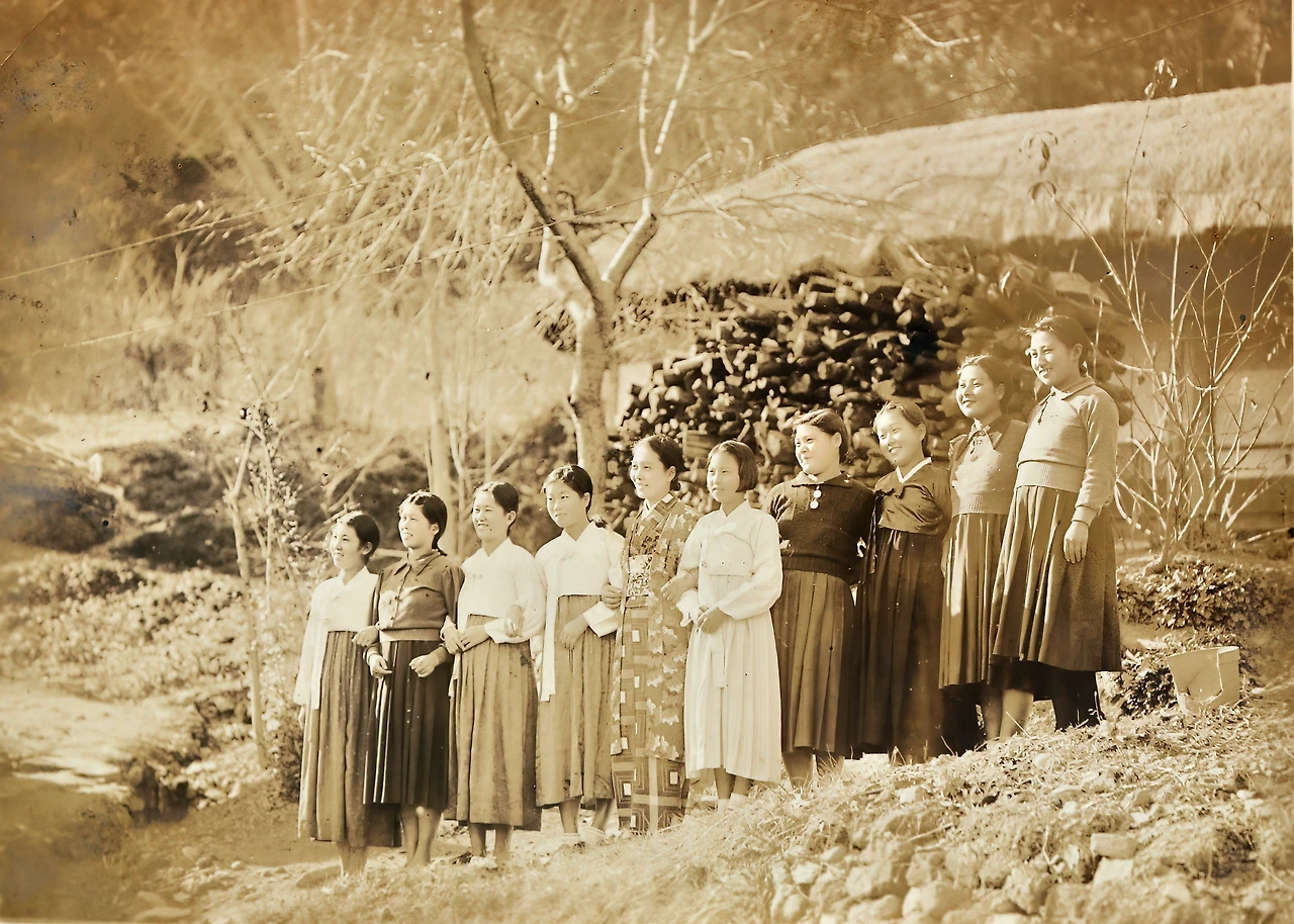 공주사범 심상과 교수와 학생들. 1938~1939.