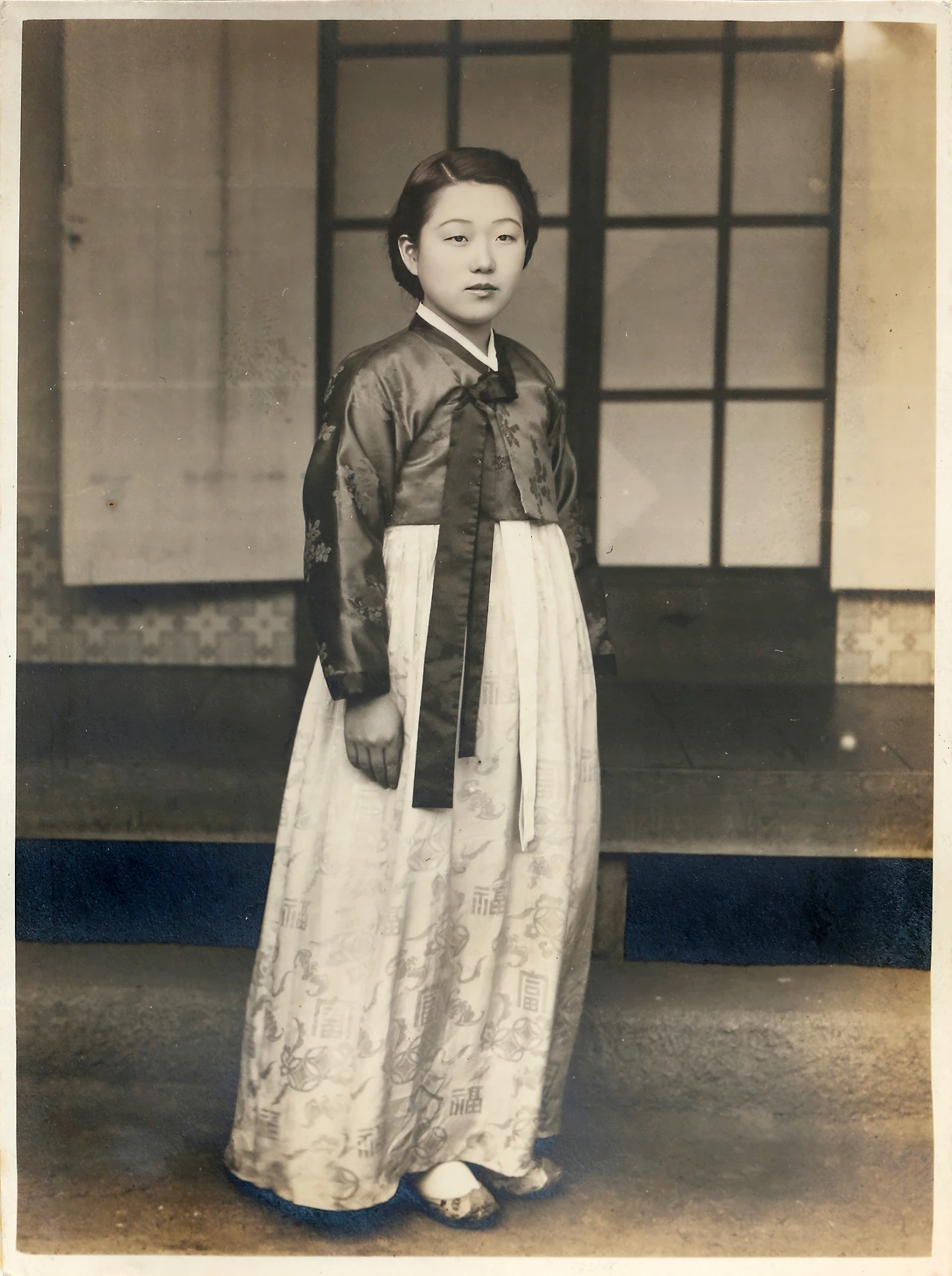 이지적이다. 학교에 근무할 때 입었던 저고리인 걸로 보아 선보기 위한 사진이었을 수도 있다.