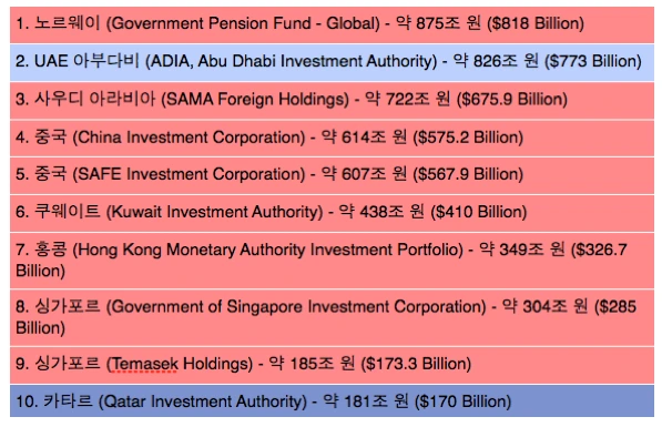 QIA와 ADIA의 규모에 대해 잘 모르는 분들은 아래에 있는 표를 보길 바란다. 모든 기록은 SWF Institute에서 참조했다.