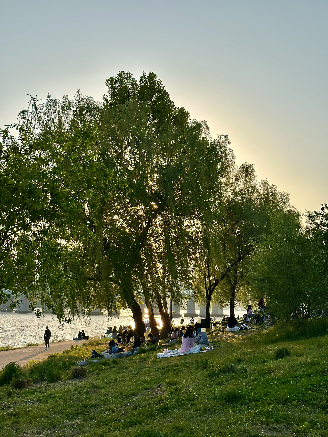 한강의 윤슬은 말도 안 되게 아름다웠고 흐드러지게 늘어진 나무들과 그 아래 옹기종기 모여있는 사람들의 모습은 내 눈에 그야말로 완벽했다. 완벽하게 평온한 모습이었다. 나처럼 혼자 온 사람들도 많이 보였다. 그 모습이 왠지 모르게 반가웠다. 내가 집에서 누워만 있었을 때, 다른 사람들은 이렇게 자연을 누리고 있었구나. 그런 생각도 들었다.