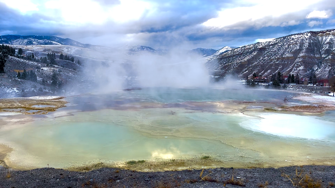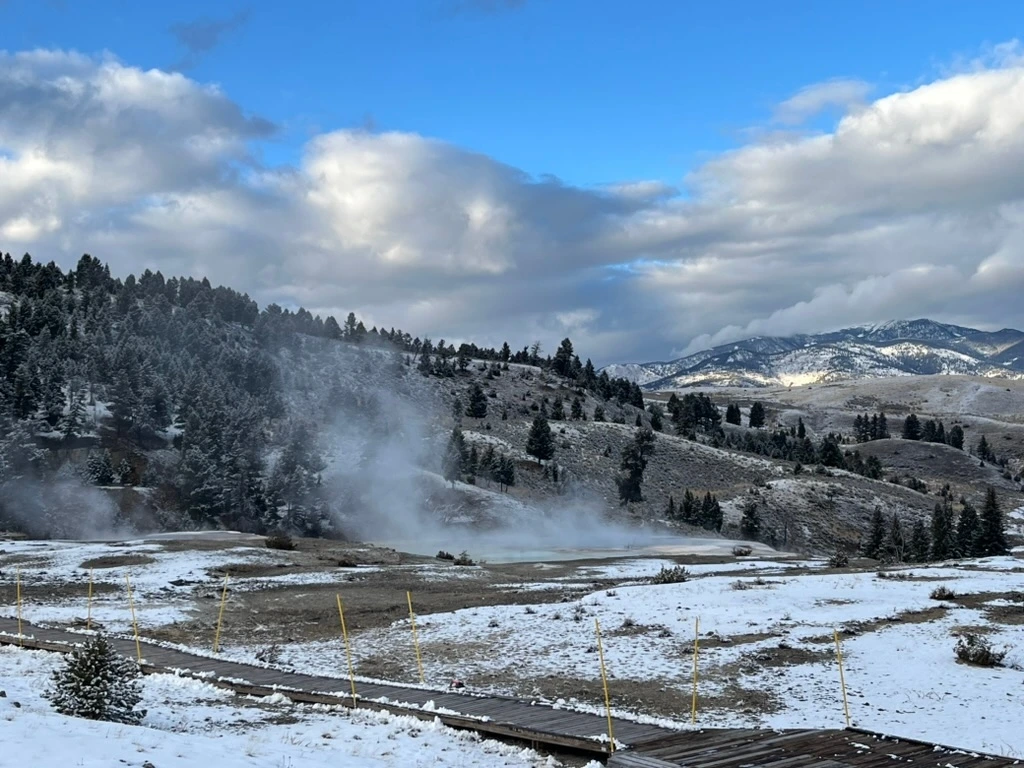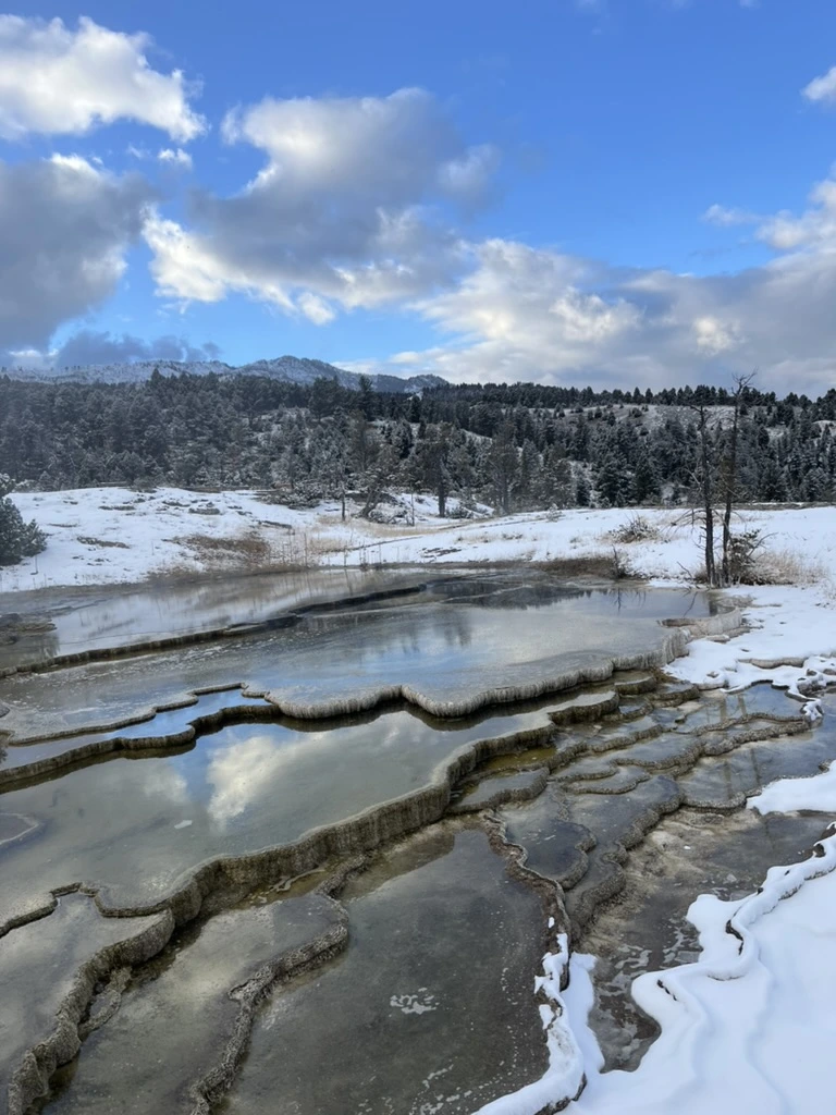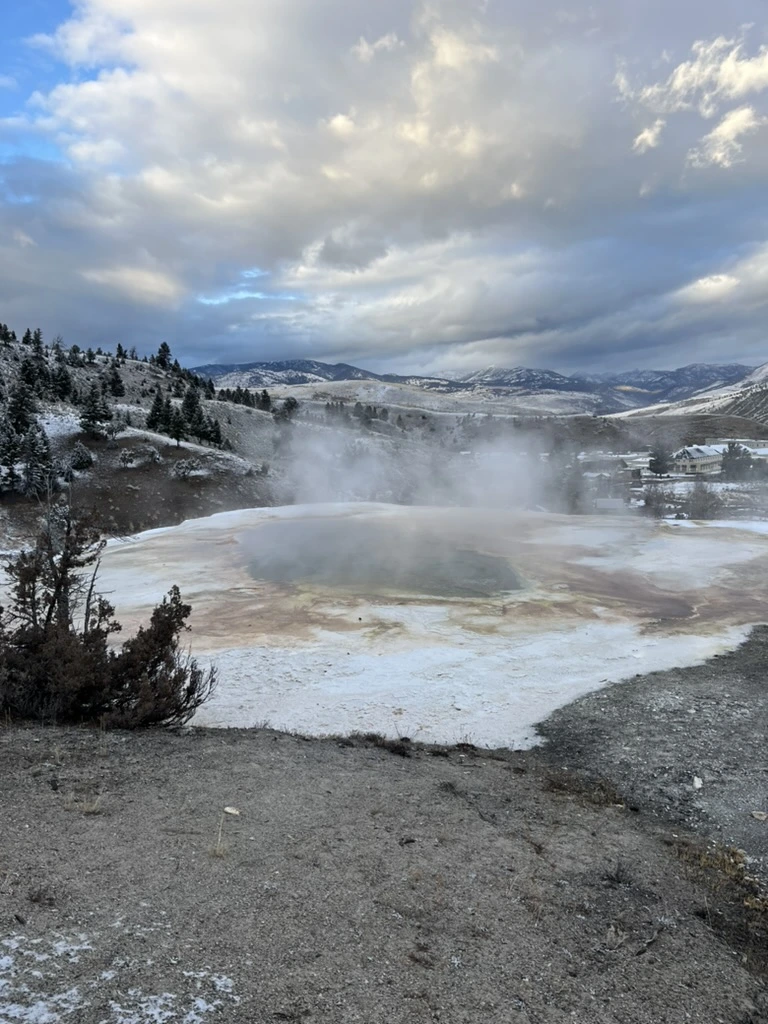 옐로우스톤에 오면 꼭 자연 핫스프링을 봐야 한다는 이야기를 들었다. 여러 곳의 핫스프링이 있지만 겨울 시즌에는 매표소에서 조금만 더 가면 있는 핫스프링만 볼 수 있다는 이야기를 듣고, 어쩔 수 없이 그곳이라도 볼 수 있다면 좋겠다며 출발했다. 지금까지 올라오는 동안 본 풍경들은 정말 옐로우스톤의 웅장한 자연에 비하면 세발의 피 같다는 느낌을 주었다.