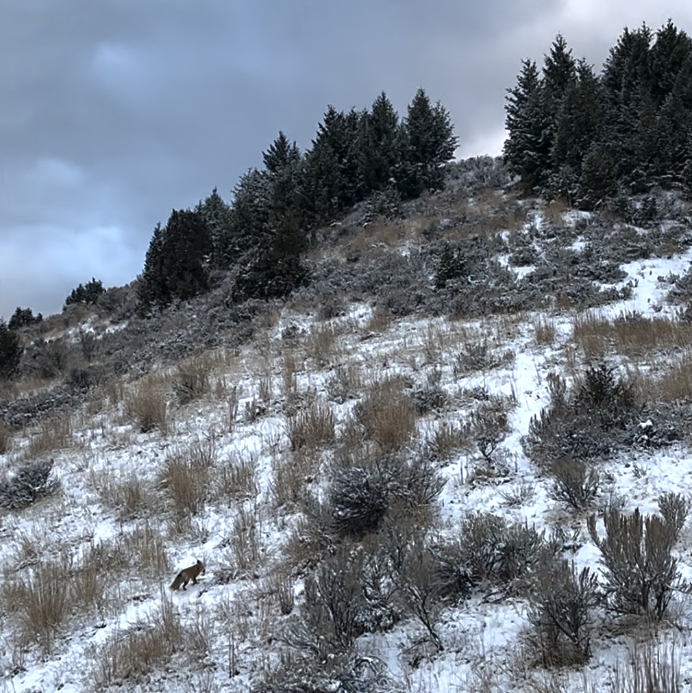 이제 열려 있는 도로를 따라 천천히 가던 중, 새침하게 생긴 여우 한 마리가 입에 무언가를 물고 눈 위를 올라가는 모습을 보았다. 산양도 그렇고 여우도 그렇고! 보기 힘든 동물을 또 만난 우리는 정말 들떴다.