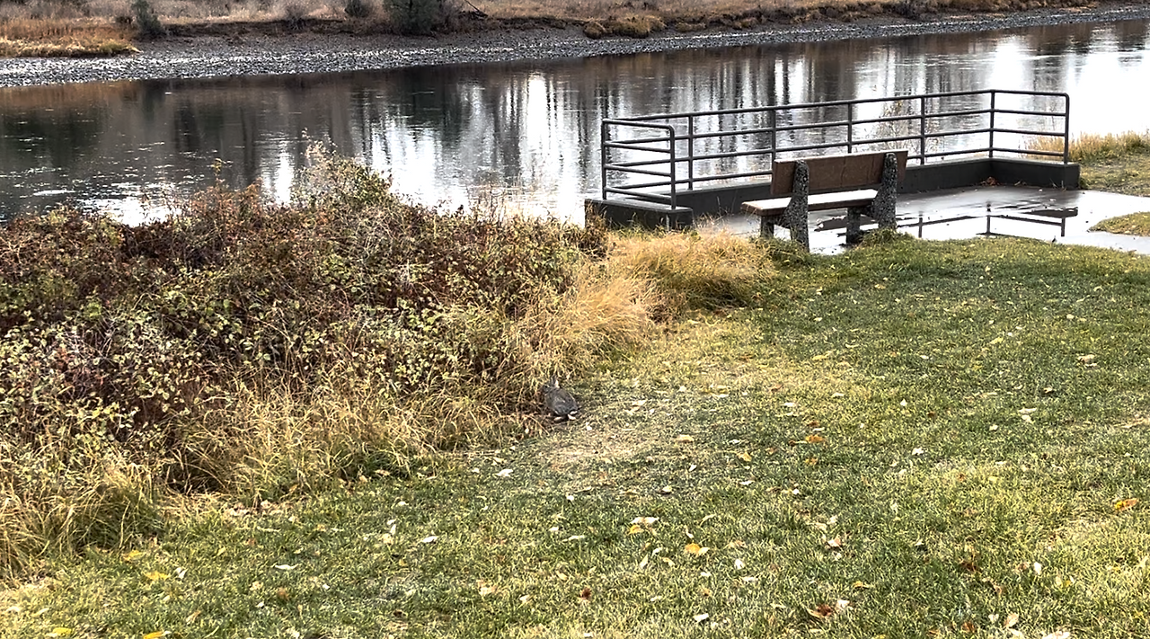 시냇물을 가까이서 보고 싶어 조심스레 다가가 보았다. 그때, 작은 회색 생명체가 나를 빤히 바라보고 있었다. "뭐지?" 하고 유심히 보니, 그건 작고 귀여운 토끼였다. 이 사랑스러운 광경을 짝꿍과 함께 나누고 싶어 그를 불렀다. 그런데 우리의 소리에 놀란 토끼는 후다닥 수풀 속으로 도망쳐 버렸다. 짧지만 소중한 만남이었다.