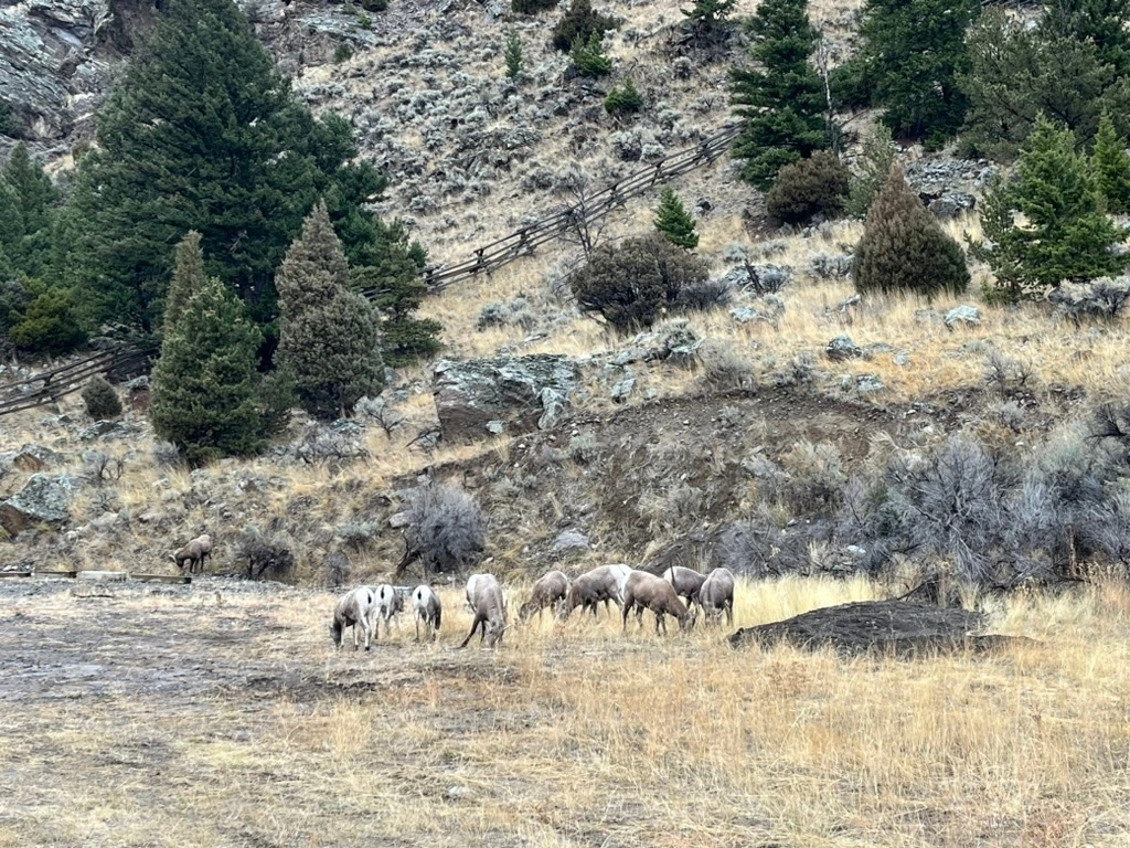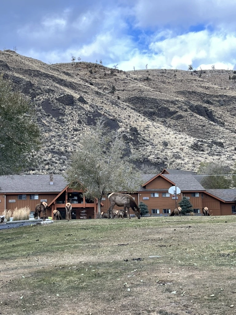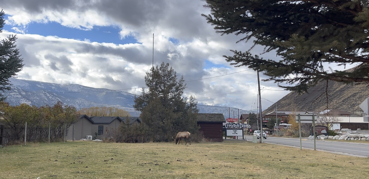 든든하게 배를 채운 뒤, 우리는 옐로우스톤 국립공원 입구를 향해 다시 길을 나섰다. 아직 공원에 들어가지도 않았는데 소, 말, 화이트테일 사슴 같은 다양한 동물들이 하나둘 모습을 드러냈다. 미국 국립공원을 여행하다 보면 사슴은 비교적 흔히 볼 수 있는 동물이다 보니 이제는 소, 말, 사슴을 보는 것은 조금 익숙하게 느껴졌다.