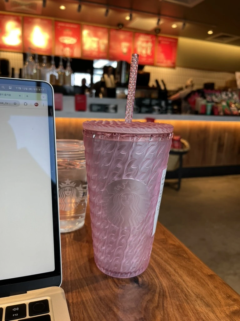 어제 스타벅스에서 구매한 예쁜 텀블러에 주문을 해보았다.