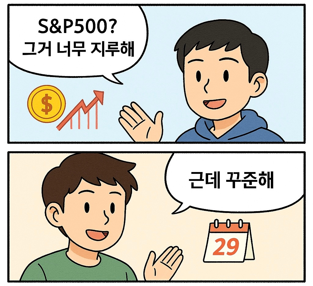 S&P500을 하지 않는 이유 중 일부는 타당해 보이지만, 사실은 대부분 단기적이고 감정적인 판단이에요. 환율이나 자산 비중을 고려해 전략적으로 접근하는 건 현명한 선택일 수 있어요. 하지만 “재미없다”, “지금 너무 비싸다”, “수익이 낮아 보인다” 같은 이유로 기회를 포기한다면, 장기적으로 큰 차이가 납니다. 투자는 ‘재미’가 아니라 ‘확률’의 싸움이에요. 그리고 확률적으로 이기는 전략이 바로 S&P500 같은 인덱스 투자입니다.