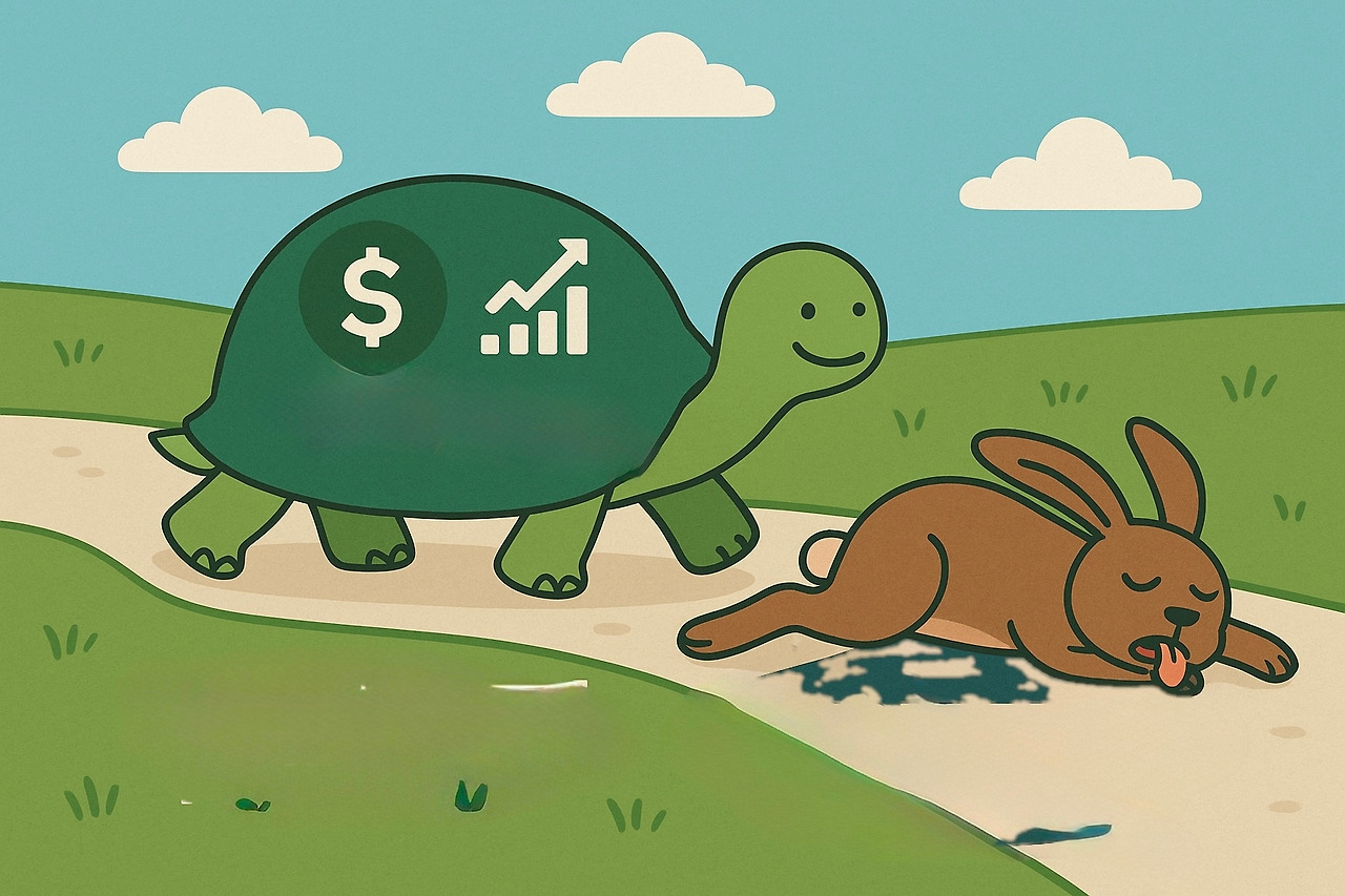 하지만 이 생각은 ‘복리’라는 마법을 무시하는 태도입니다. 연 8% 수익률이라도 7-10년을 버티면 원금이 두 배가 됩니다. 20년을 버티면 네 배가 되고, 30년이면 10배 이상 불어나요. 그 긴 시간을 버티는 사람만이 진짜 부자가 되는 거예요. 7-10년에 2배라는 수치가 되게 작아보일 수도 있어요. 단기 고변동 자산에 투자하는 사람들은 이런 움직임을 견디지 못합니다. 반면 단기 고수익을 노리다 실패하는 사람은 훨씬 많아요. 주식시장에서 ‘평균적인 개인 투자자’의 수익률이 0% 이하인 이유가 바로 이 조급함 때문입니다.