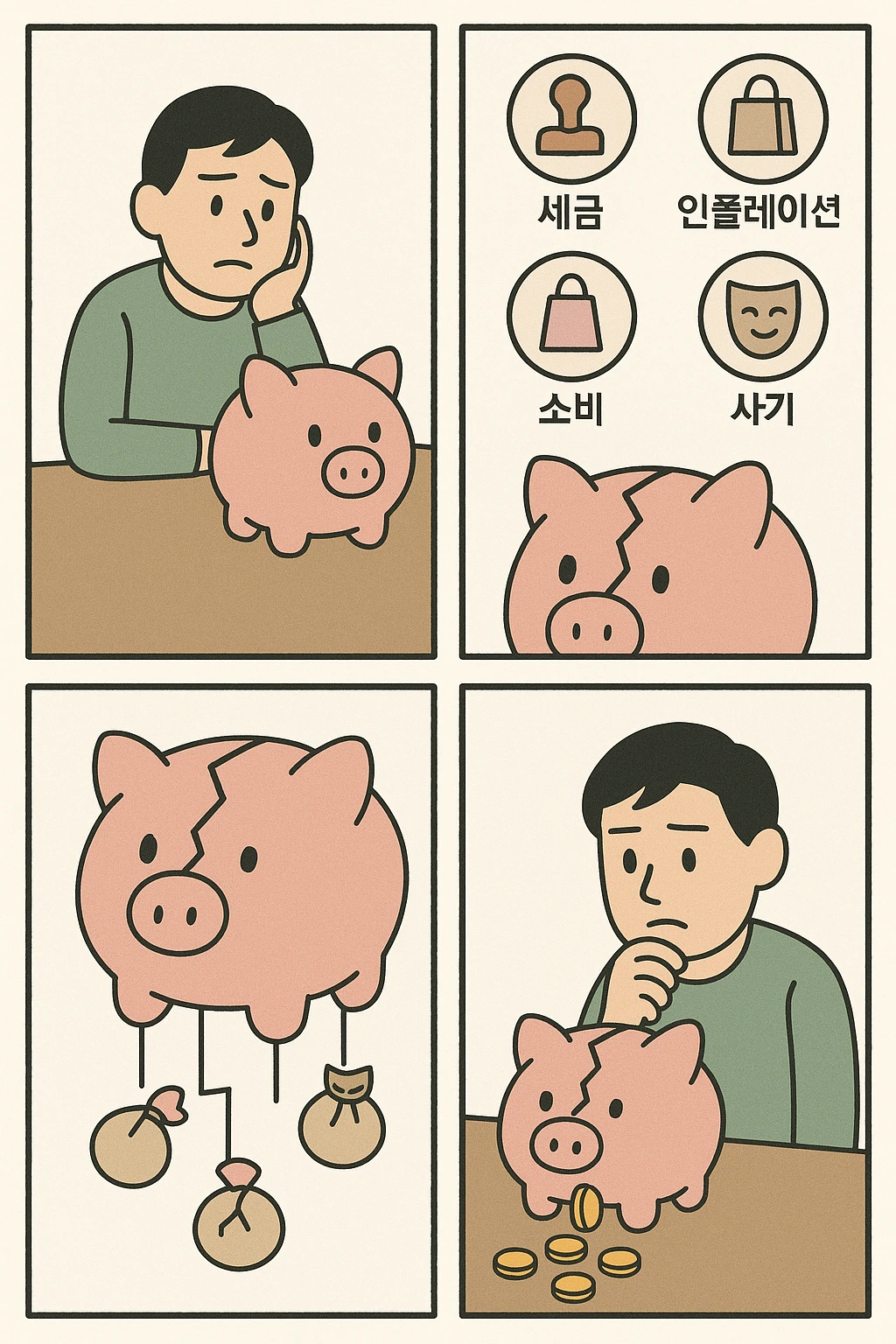 “내가 돈을 못 벌어서 그런가?” 하고 자책하지만, 사실은 구조적인 이유가 더 큽니다. 돈에는 이미 균열이 나 있어, 조금씩 새어나가도록 짜여 있습니다. 이번 글에서는 우리가 아무리 애써도 돈을 지키기 힘든 다섯 개의 균열을 짚어보죠.