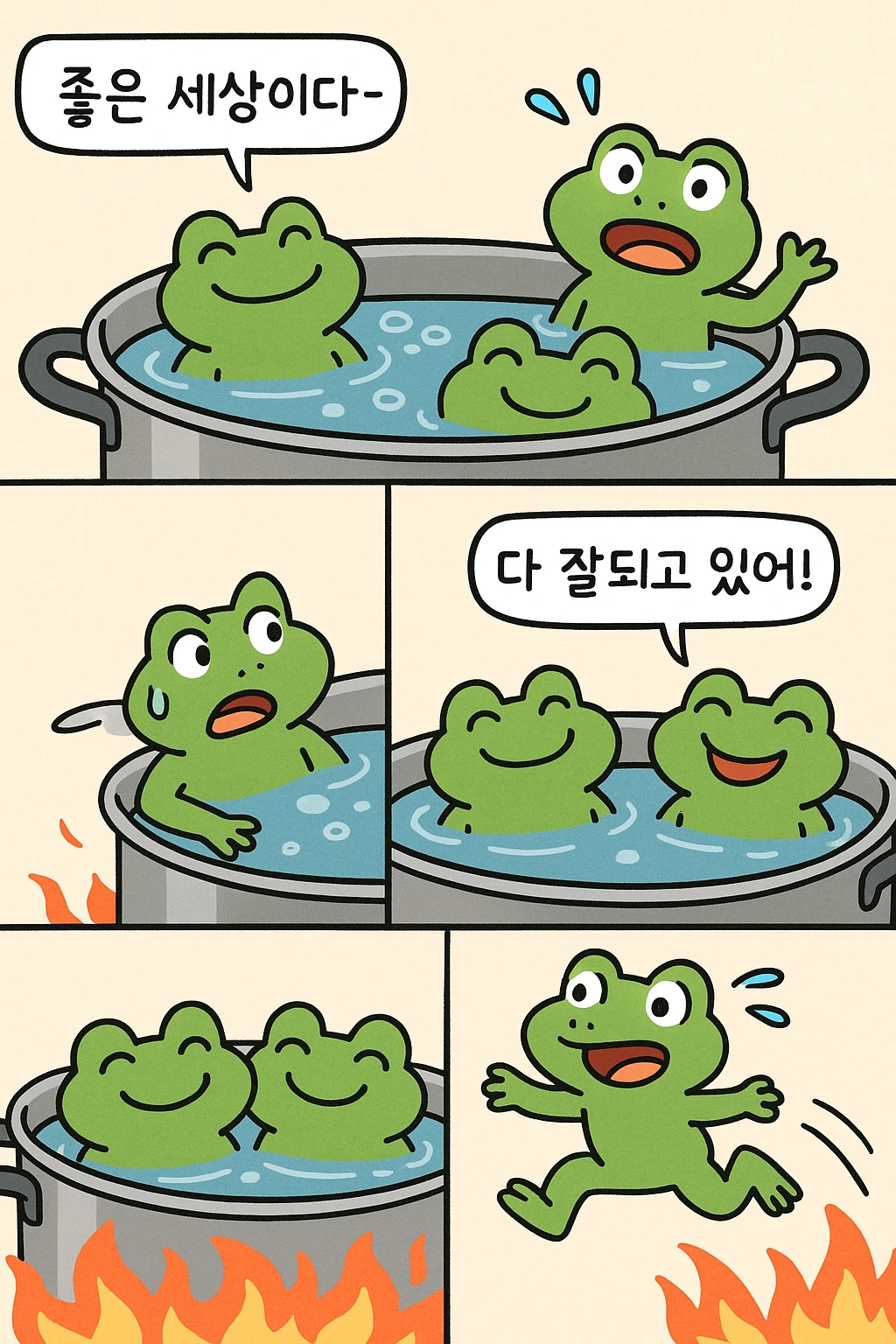 지금은 냄비가 따뜻하게 달궈지는 단계입니다. 어떤 사람들은 “좋은 세상”이라며 자축할지도 몰라요.우리나라 국민 대다수가 이런 세상이 오기를 바라고 있습니다. 오늘은 글이 무거웠습니다. 하지만 근미래를 생각해보면 이와 비슷한 관점 외에는 떠오르는 것이 없네요.