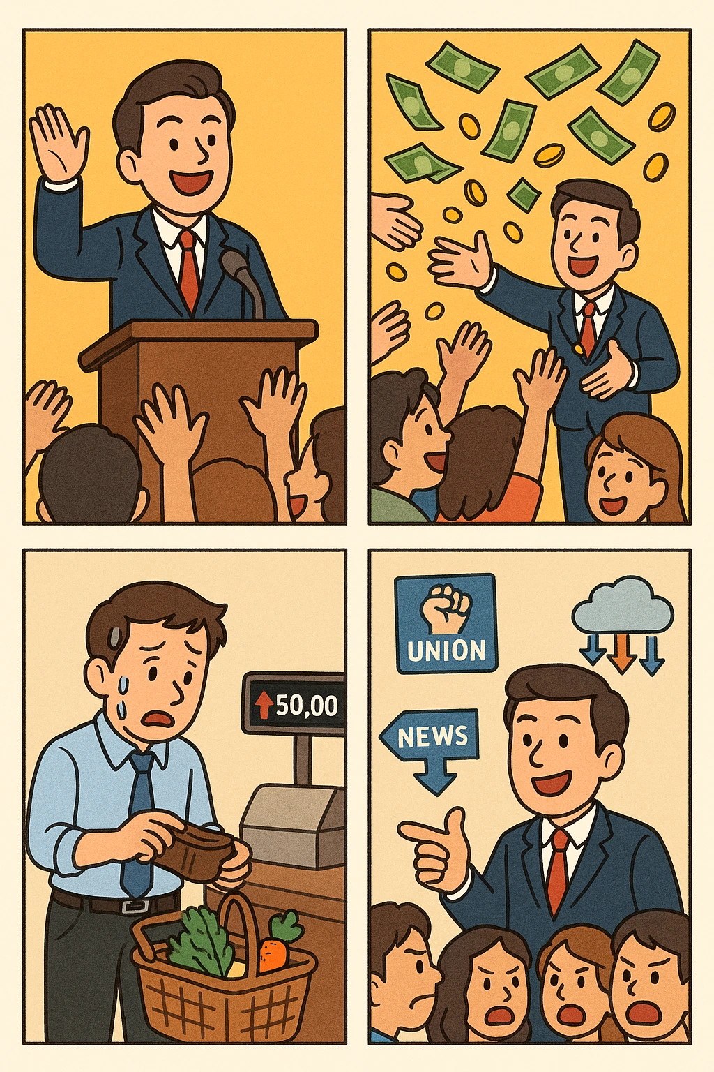 우리가 인식해야 할 점은, 정치인의 정책을 그저 단기적인 ‘혜택’으로만 보아서는 안 된다는 사실입니다. 정치인의 돈 풀기는 결국 미래의 나에게 떠넘겨질 빚이자, 중산층의 삶을 조금씩 무너뜨리는 장치입니다. 정치적 선택은 경제적 결과를 낳습니다. 그리고 그 결과는 고스란히 우리의 일상 속 물가와 소득의 불균형으로 나타납니다.